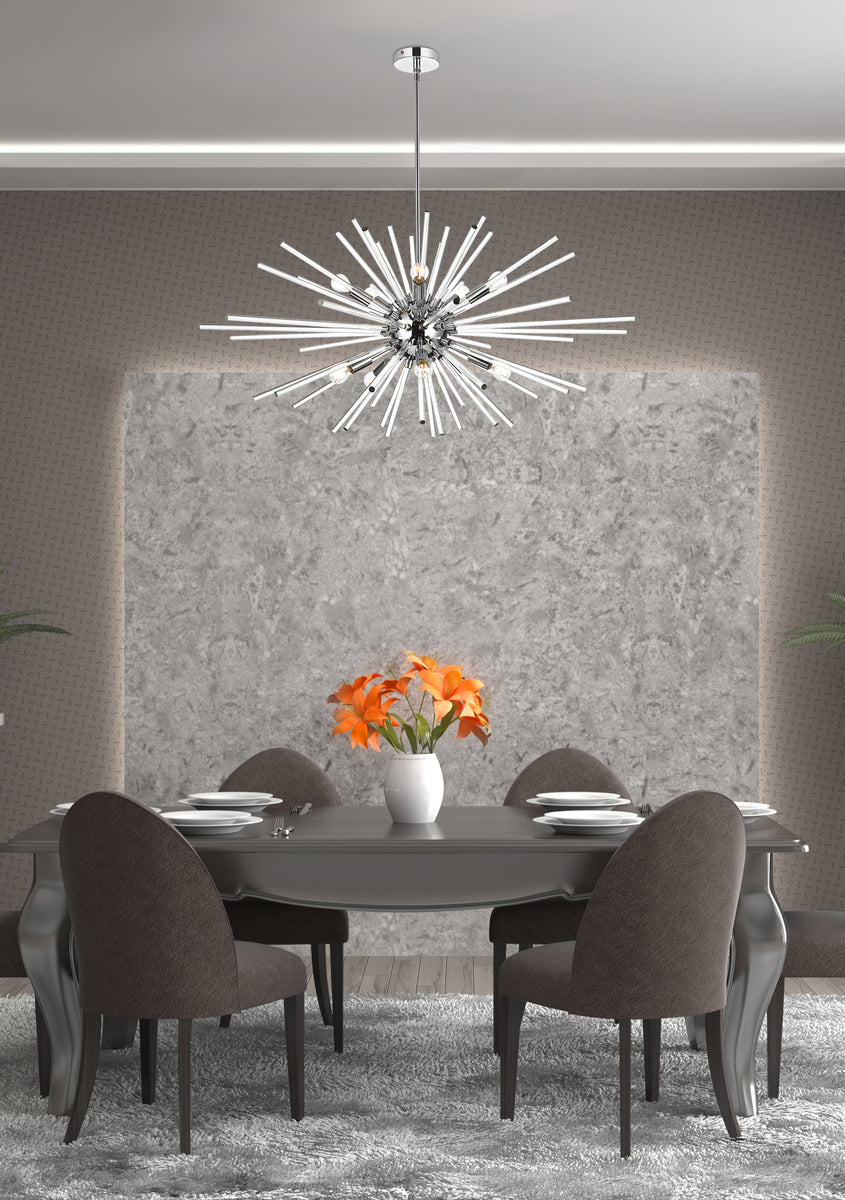Enjoy the beautiful design of the Sienna collection pendants. The clear crystal rods seem as if they are following the direction of the lights bringing about illumination. Is it the sun? Is it a new day? No, it's simply just a fabulous light pendant! The perfect addition to your home, whether it's the living room, dining room, office or the entryway. Sloped ceiling adaptable with a durable swivel could be mounted on vaulted or angled ceilings.