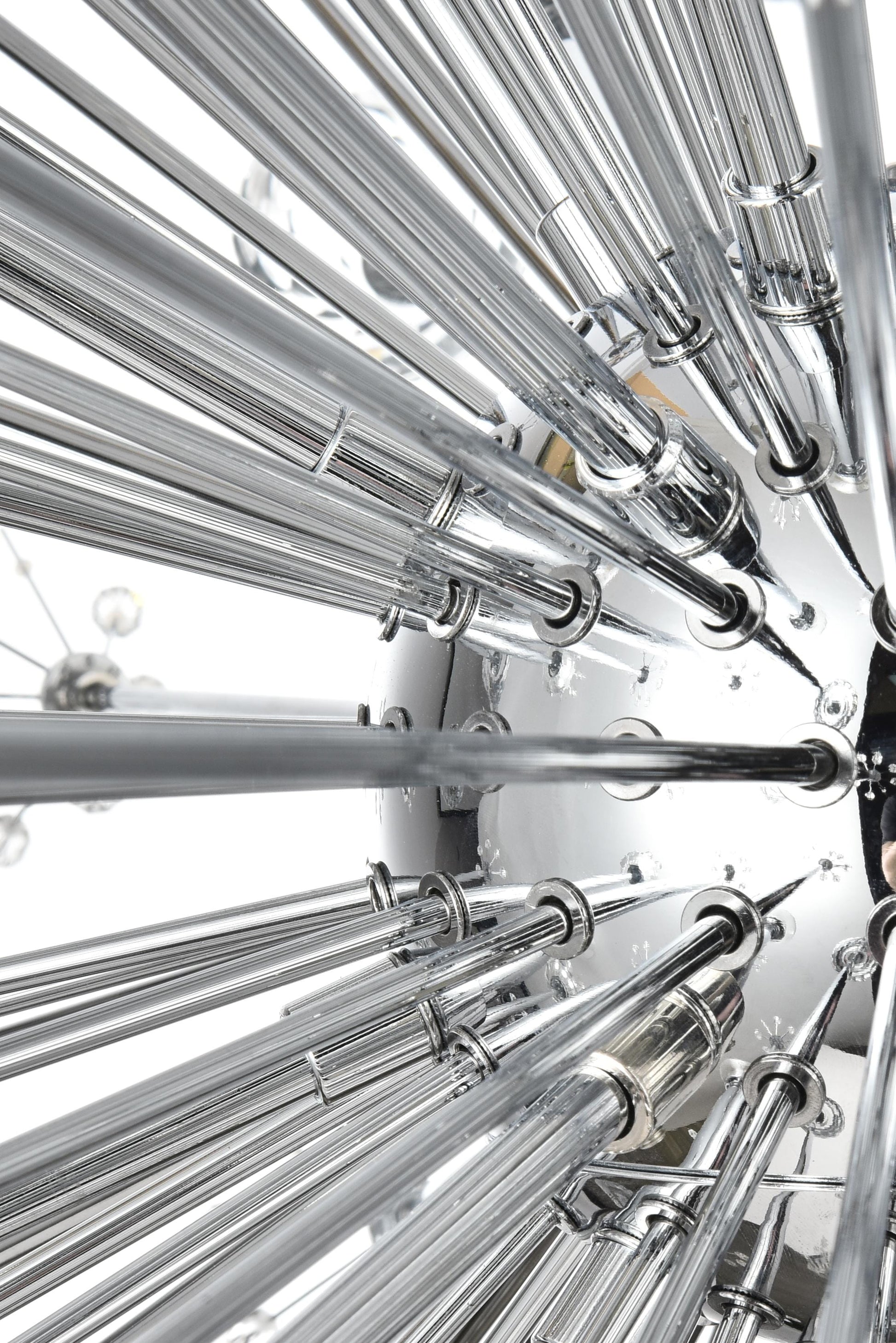 Like an explosion frozen in time, Vera collection hanging fixtures are suspended chaos. Clear large crystal balls and sprays of smaller crystals swirl amidst exposed candelabra bulbs (not included) balanced on dainty wires. A gleaming steel sphere forms the epicenter of the storm. A touch of savage beauty that easily compliments a kitchen, entryway, or bedroom. With easy assembly and compatibility with multiple bulbs, this chandelier not only illuminates but elevates your space with timeless sophistication.