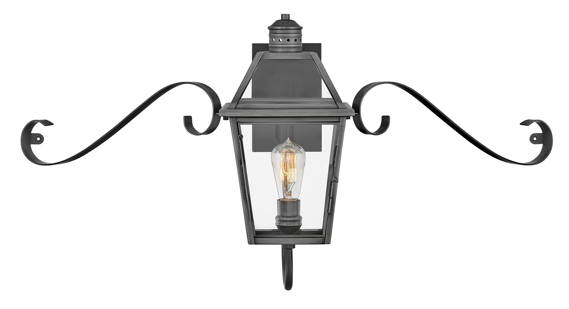 Handcrafted of solid brass, Nouvelle's construction evokes timeless vigor enhancing the appearance of a range of façades, from French Traditional to Modern. Nouvelle’s Blackened Brass cage stands out among its slightly tapered, four-sided glass panels to reinforce its simple charm.