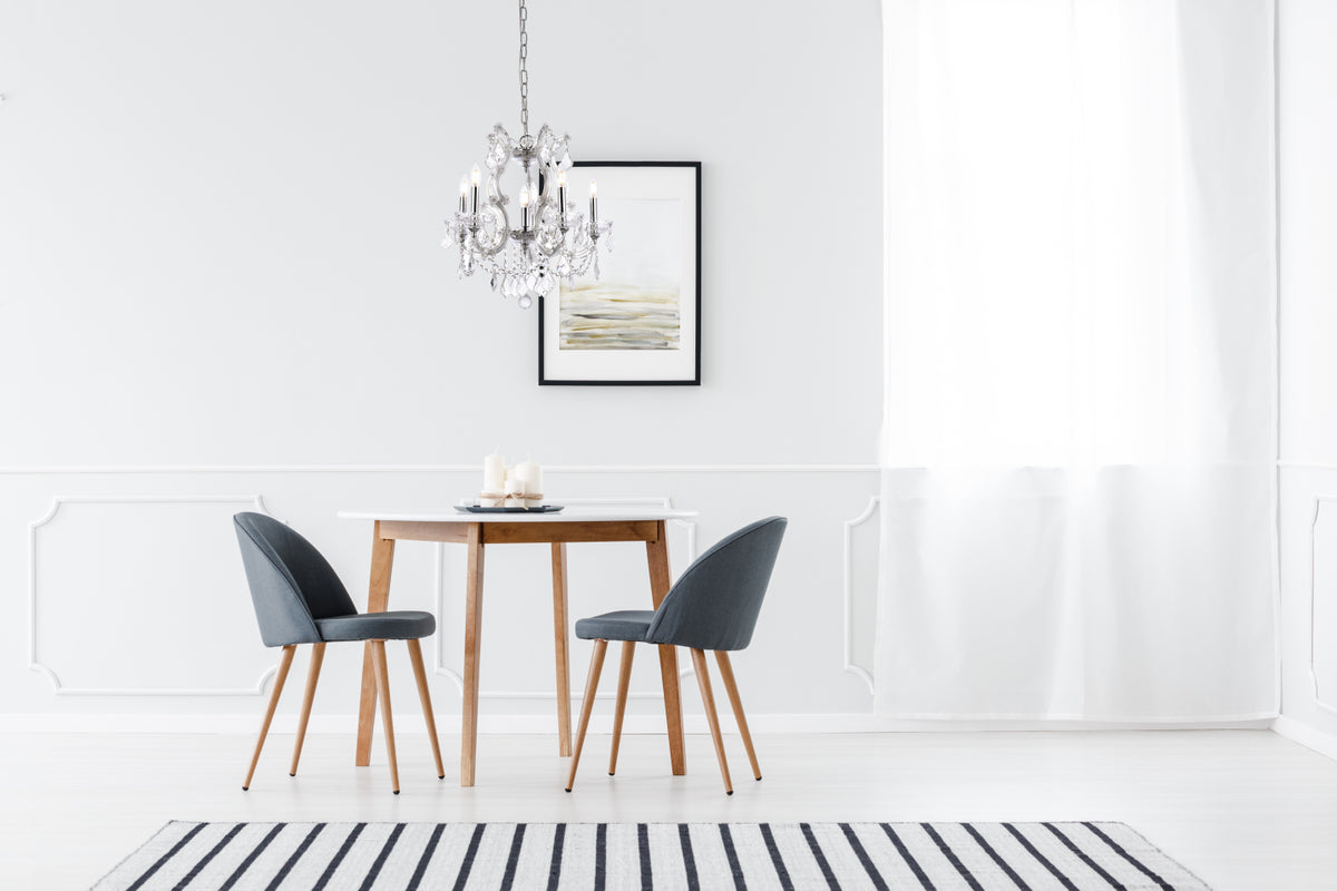 A heavenly high point to your home, Maria Theresa collection pendant lamps are ablaze with hundreds of resplendent crystals. Copious strands of sparkling clear or golden-teak crystals dangle from elaborate tiers of glass-coated steel arms in your choice of a chrome, gold, golden-teak, white, or black finish. An imperial favorite for the stairwell, dining room, or living room.