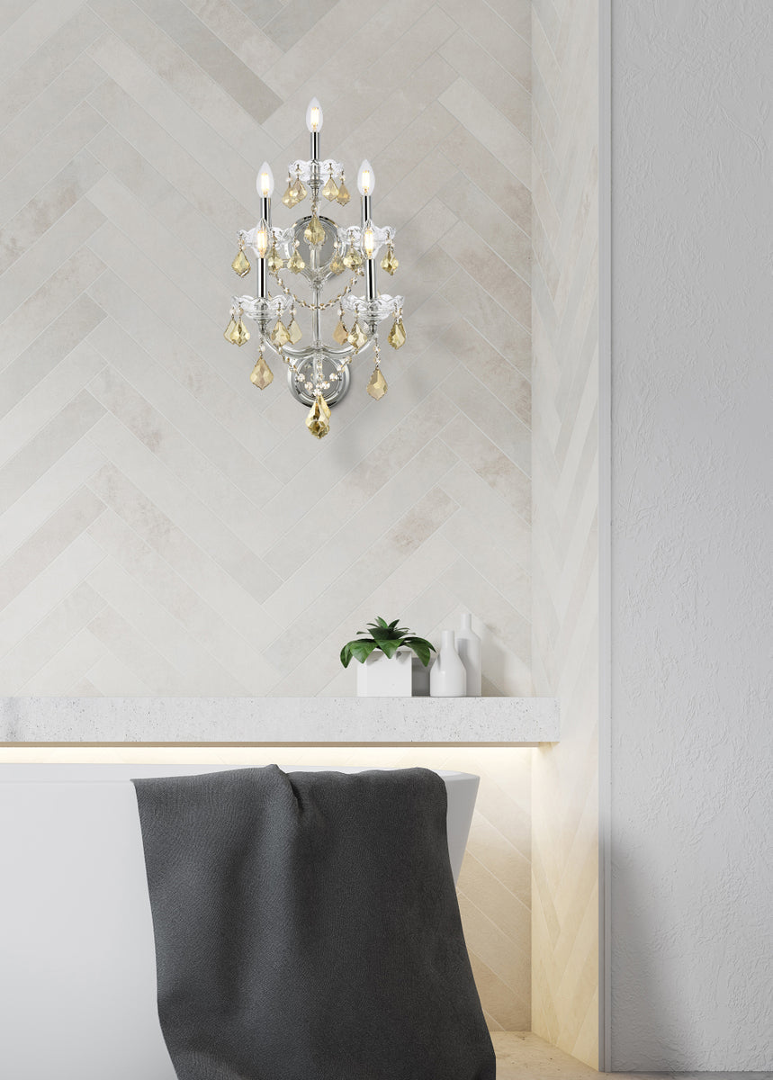 Maria Theresa 5 light Chrome Wall Sconce Golden Teak (Smoky) Royal Cut Crystal