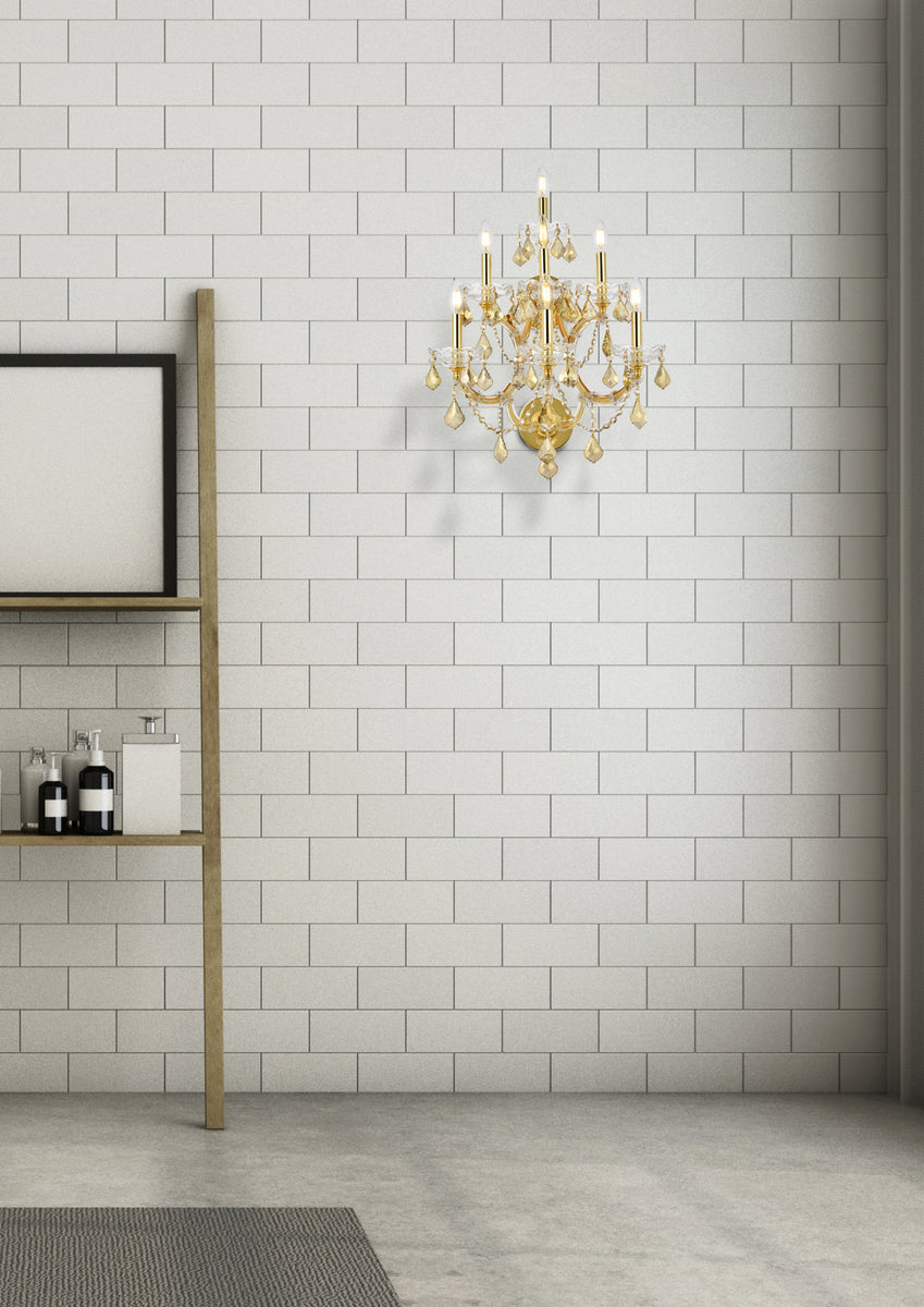 Maria Theresa 7 light Gold Wall Sconce Golden Teak (Smoky) Royal Cut Crystal