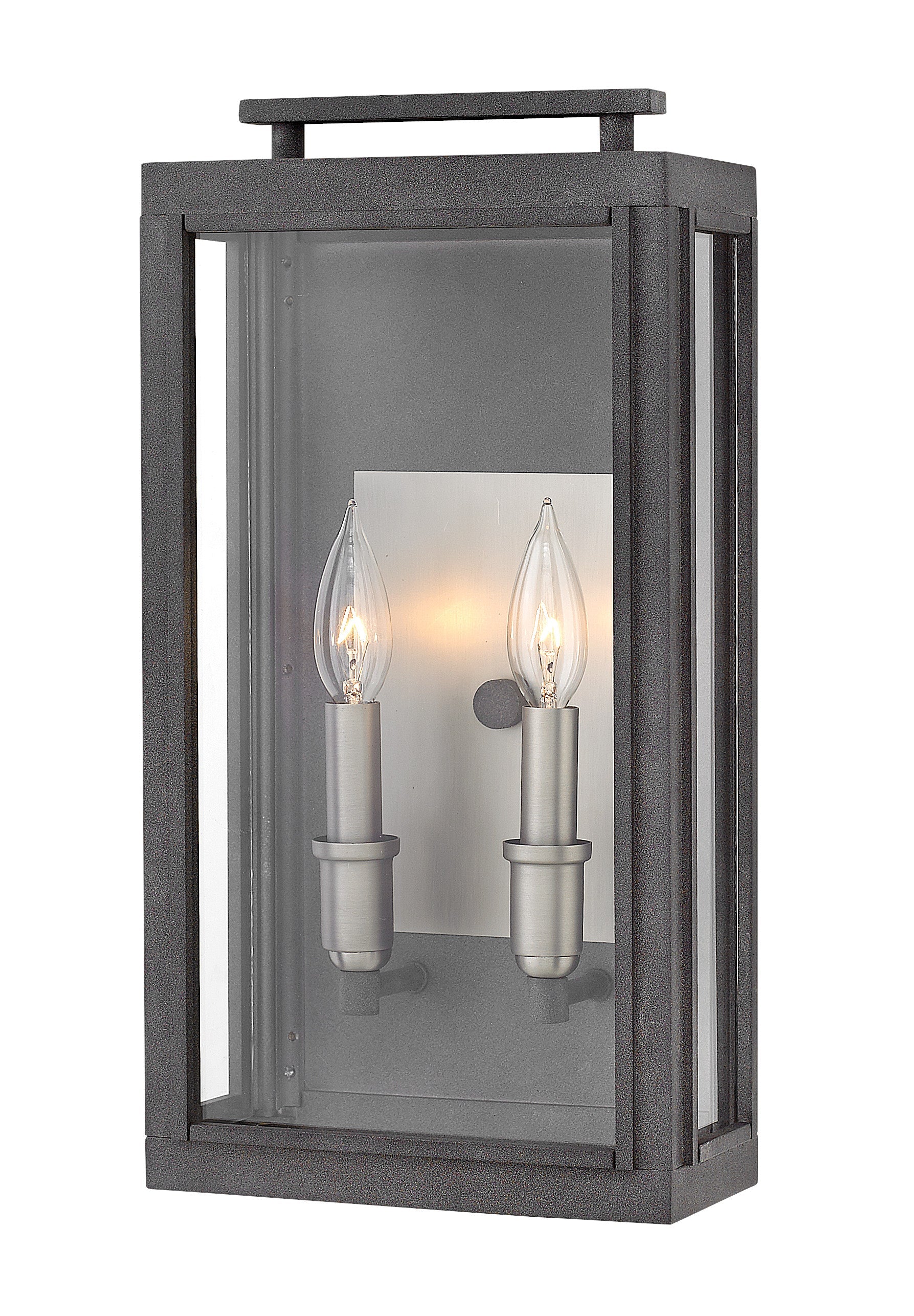 The Sutcliffe collection conveys chic elements of early Americana styling. The candelabra lamping and clear glass, paired with an accent reflector, infuse this sleek pocket lantern design, constructed of solid aluminum, with a perfect blend of old and new.