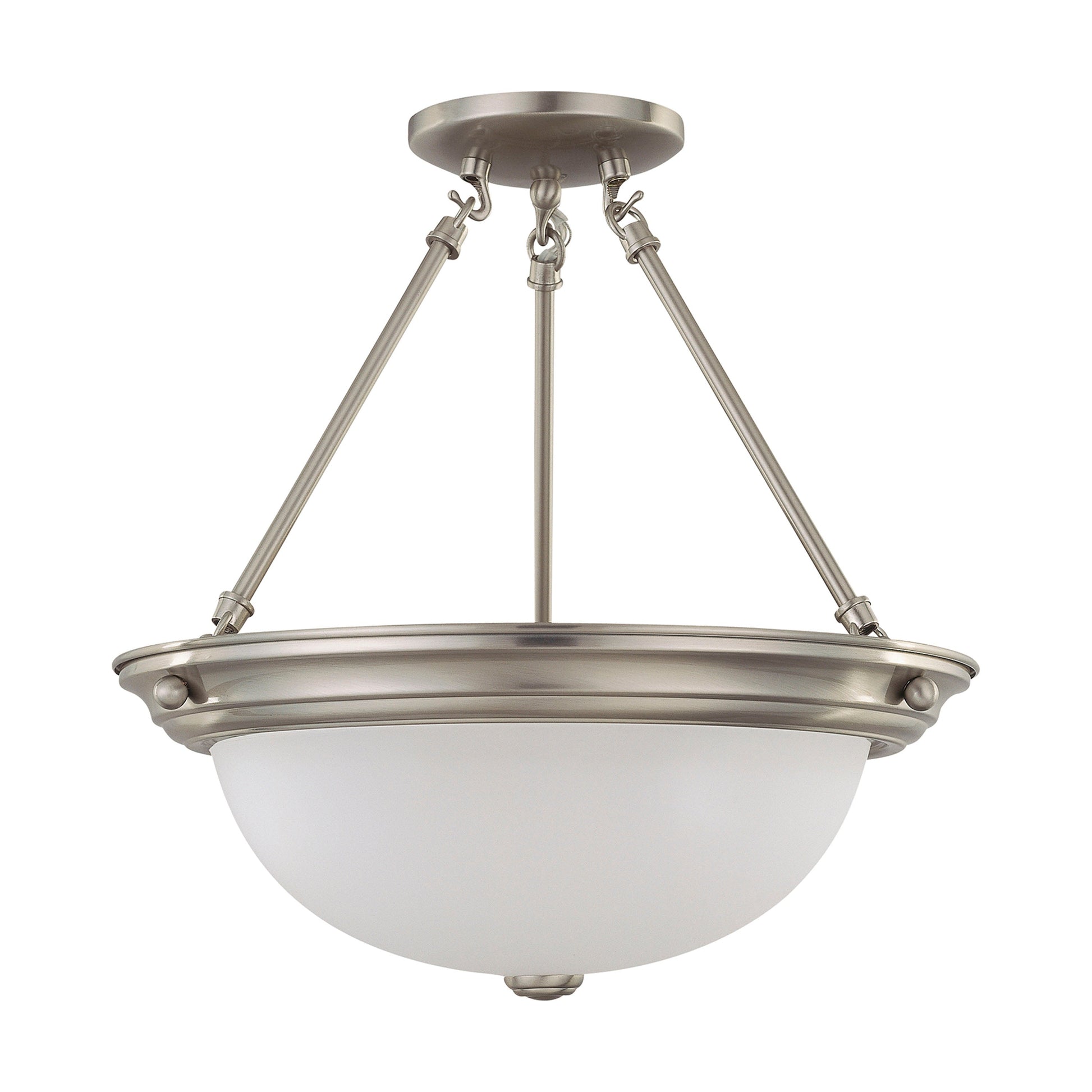 3 Light; 15 in.; Semi-Flush with Frosted White Glass