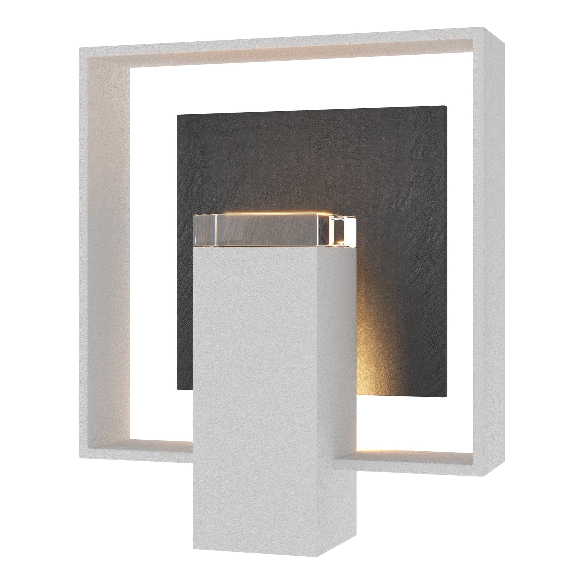 The Shadow Box Medium w/Slate Outdoor Sconce exudes elegance. Inspired by contemporary architecture, Designer David Martin "wanted a sensual minimalism accentuated by the dramatic lighting." This exterior fixture has a Vermont black slate backdrop within a square aluminum frame and is offered with any of our robust AAMA 2604-rated Coastal Outdoor Finishes, and a block of optic crystal for an added touch of glam.