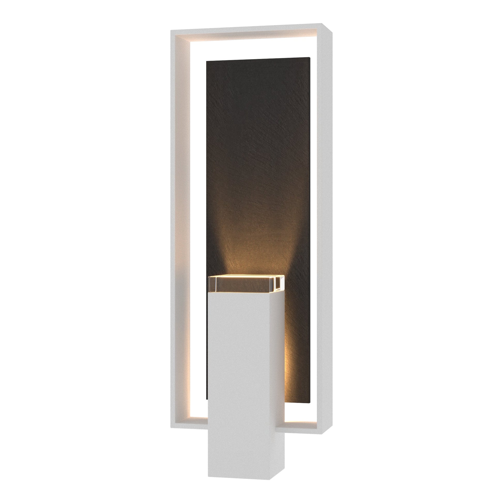 With a focus on materials and geometric balance, the Shadow Box Large w/Slate Outdoor Sconce proves that high-impact lighting need not be complex. "I was inspired by contemporary architecture” said Designer David Martin, “but wanted a sensual minimalism accentuated by the dramatic lighting.” Each exterior wall mount is accented with a block of optic crystal and a natural Vermont black slate accent plate.