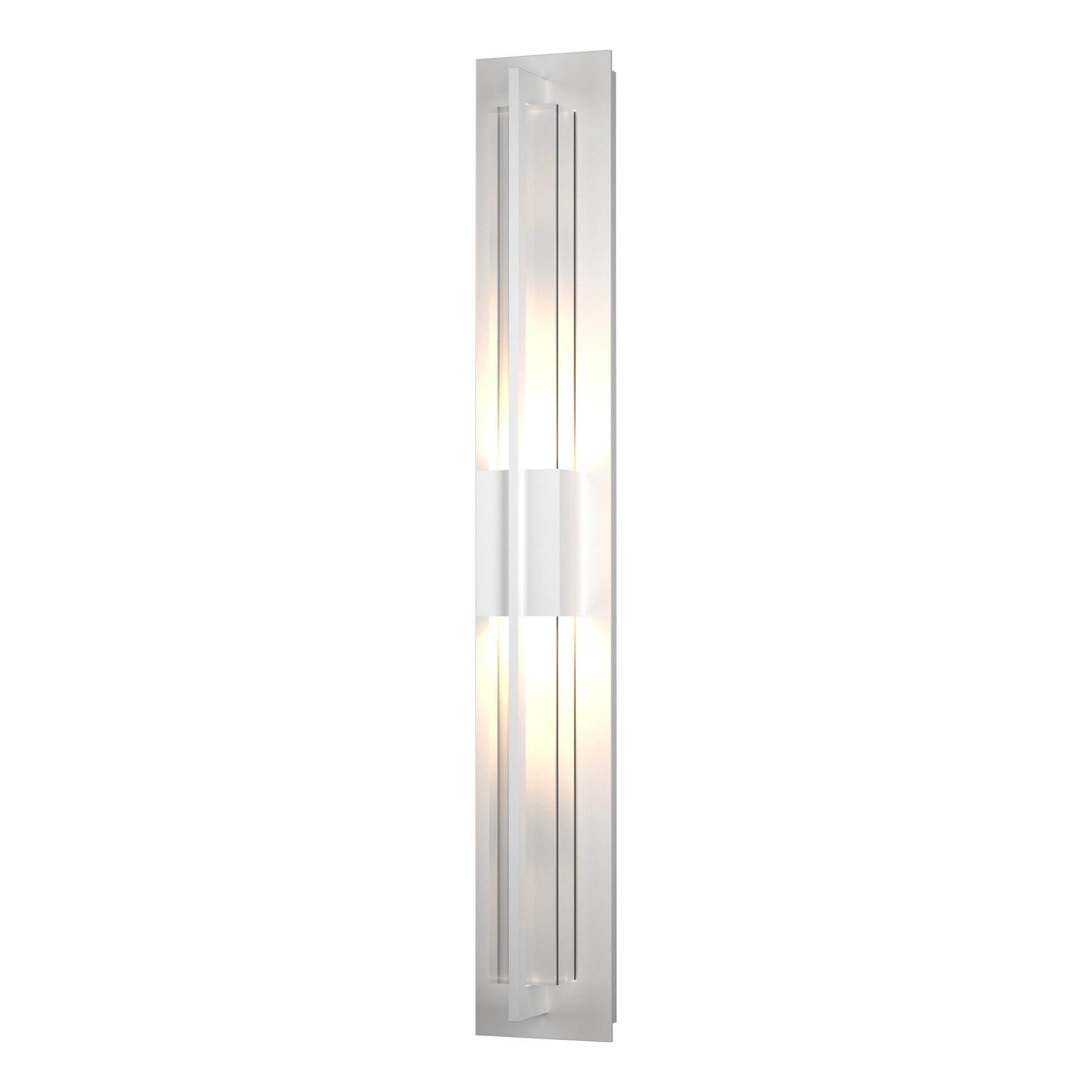 If you need to pull a design together, our large Double Axis LED Outdoor Wall Sconce can deliver the light of inspiration. A single, handcrafted aluminum arm angles around to clasp the glass at either end with a wider band bisecting the center.