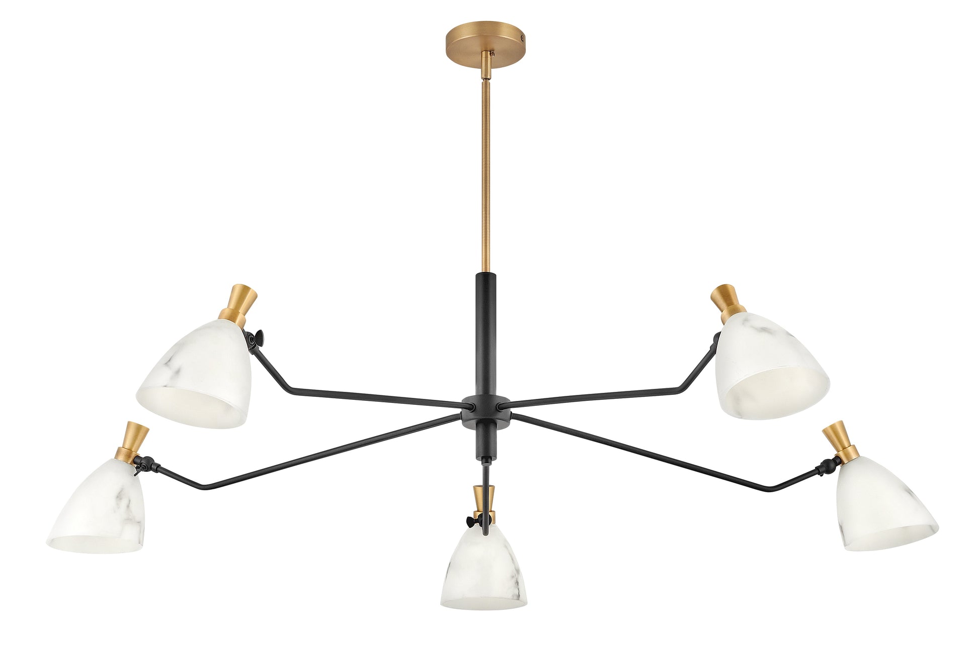 Influenced by a mid-century modern aesthetic, Sinclair’s striking profile is accentuated by stunning details. A classic finish combination of Heritage Brass and Black is paired with luminous, luxurious cloudstone shades. Sinclair’s sophisticated design offers articulating shades to create a custom look. All designs for Sinclair must be bulbed with LED bulbs only (not included).
