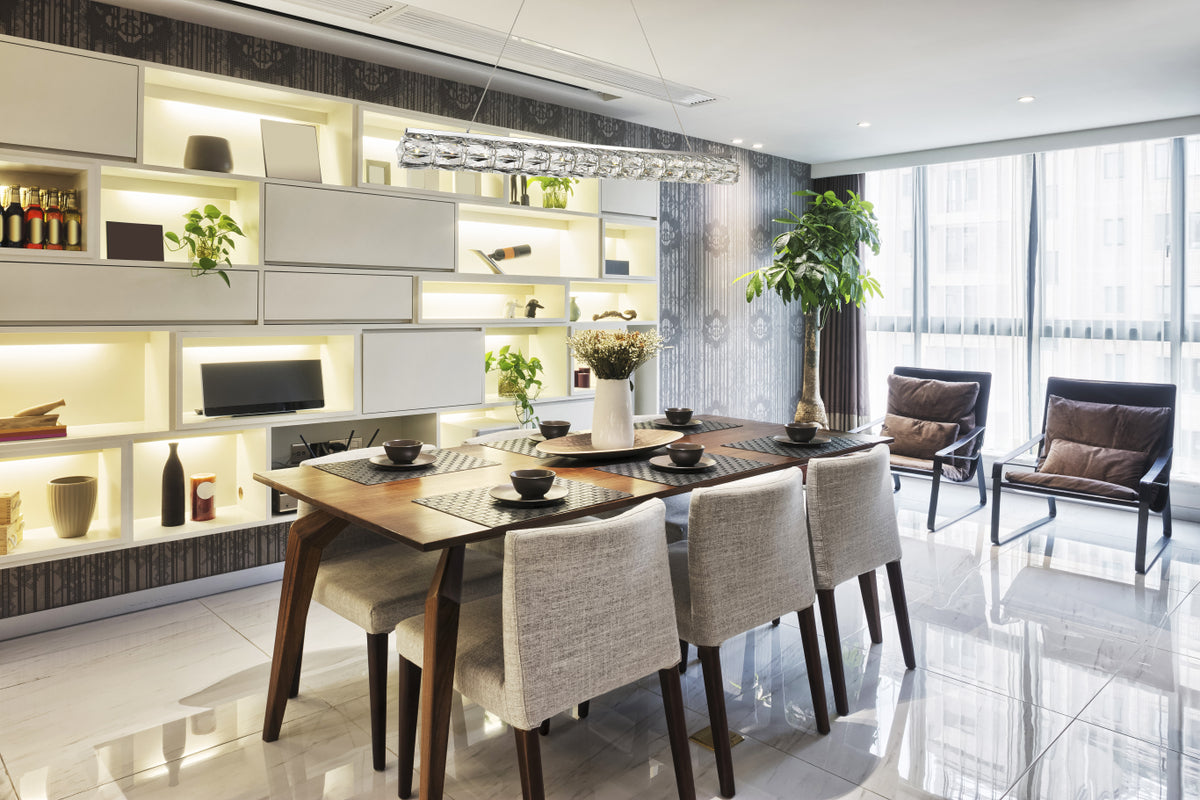 Valetta hanging fixtures dress up a living room, dining room, or bedroom without overwhelming the surrounding décor. This collection features an octagonal tube-shaped stainless-steel frame that’s covered almost entirely with shining rectangular royal-cut clear crystals. Faceted crystal octagonal crystals cover both ends as a charming finishing touch. A rectangular mounting plate is connected to the frame by slender cables that keep everything secure. A sleek chrome finish completes this modern look. Available in three different lengths.