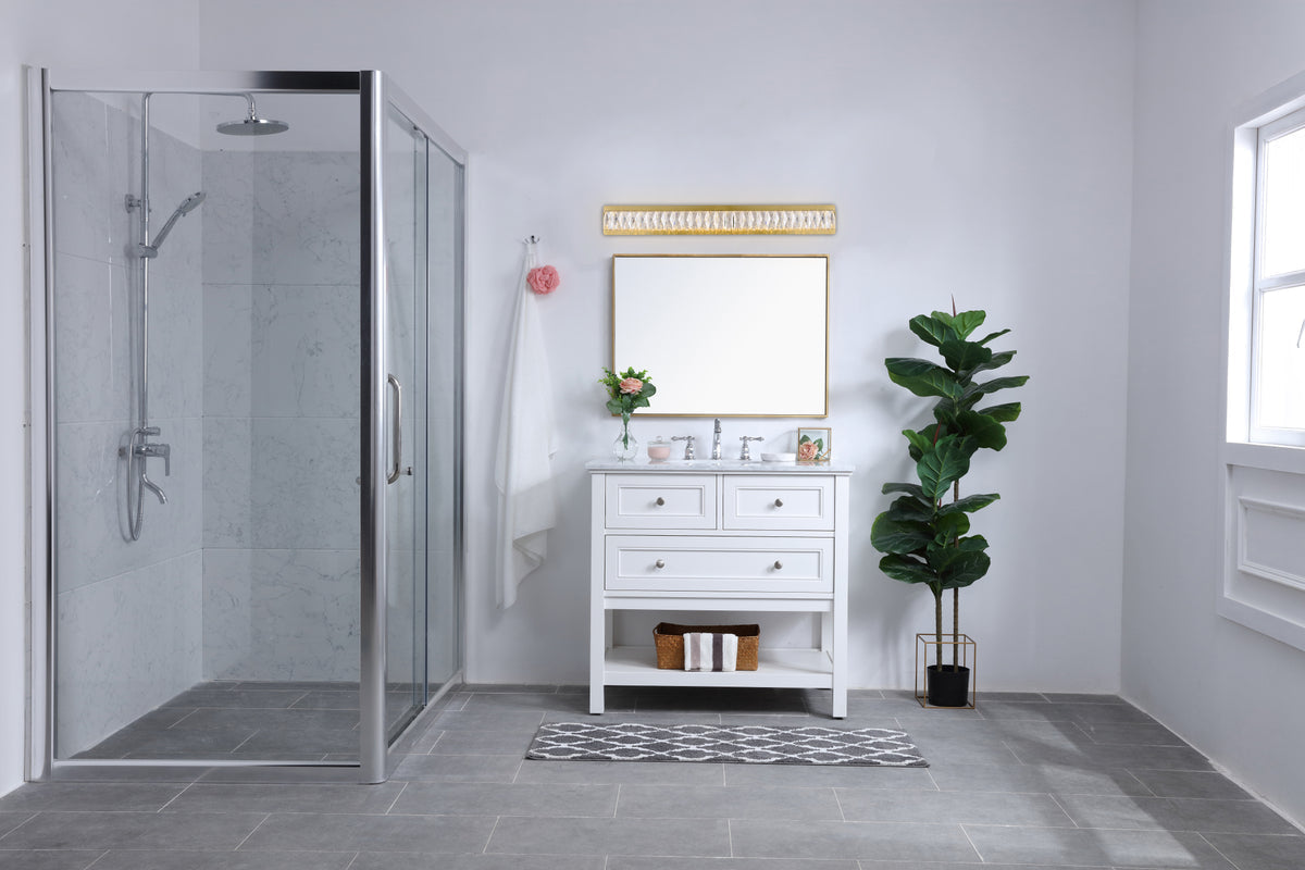 Monroe collection wall sconces dress up a bathroom, office, or bedroom without overwhelming the surrounding décor. A rectangular stainless-steel frame and backplate would seem austere if it weren’t covered by a row of shining rectangular royal-cut clear crystals. The gold-finished backplate is polished to a mirror shine and reflects the glittering crystals for additional sparkle. Available in three size options with a sleek gold finish that completes this modern look.