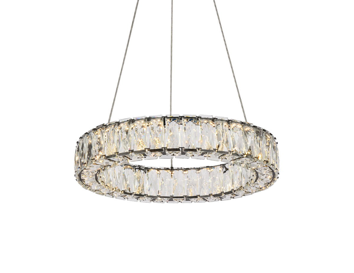 Diamonds are a girl’s best friend, and sparkling Monroe collection hanging fixtures take Marilyn’s famous lines to heart … for women and men alike. A minimal stainless-steel frame becomes dazzling when it is covered entirely with rectangular and square spectacularly faceted clear crystals. The oblong design hangs from almost invisible wires with brilliant integrated LED shining unseen from within. Stunning when placed in a dining room, kitchen, living room, or bedroom.