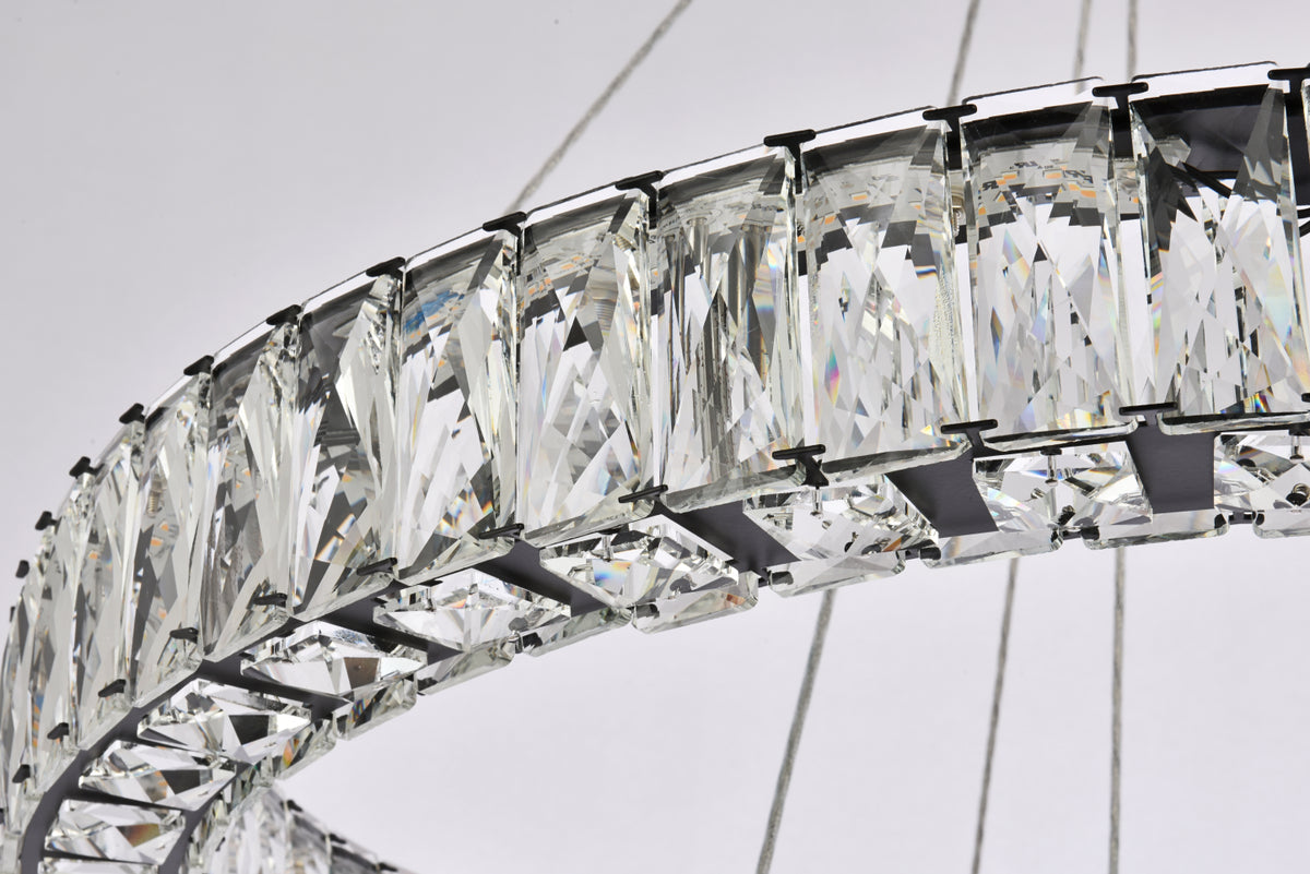 Diamonds are a girl’s best friend, and sparkling Monroe collection hanging fixtures take Marilyn’s famous lines to heart … for women and men alike. A minimal stainless-steel frame becomes dazzling when it is covered entirely with rectangular and square spectacularly faceted clear crystals. The oblong design hangs from almost invisible wires with brilliant integrated LED shining unseen from within. Stunning when placed in a dining room, kitchen, living room, or bedroom.