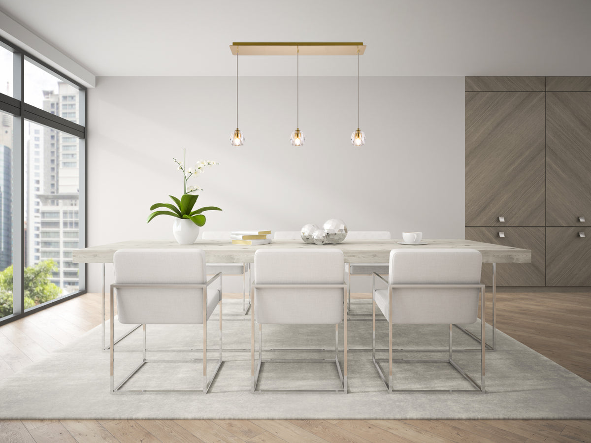 Like enchanting bubbles of air surfacing from the fathoms of the deep sea, the Eren contemporary hanging pendant adds lighting with richness and grace. The layering of clear crystal globes offer softened, harmonious light to match a variety of home décor. Creating an environment of sophistication, this beautiful hanging pendant adds drops of magic to express your refined style.