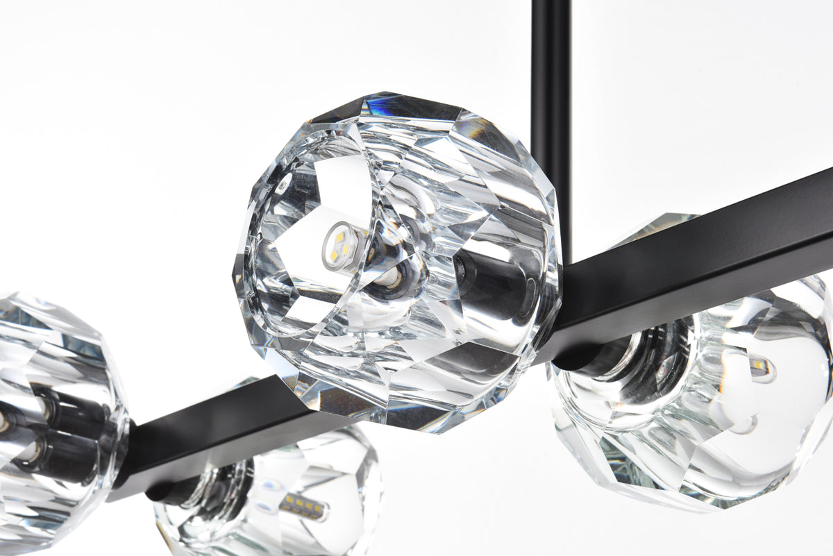 Presenting the Eren 31-inch pendant light—a beacon of sophisticated elegance. Eight lights, adorned with faceted crystal glass shades, emit a luxurious and dazzling radiance, creating a timeless atmosphere of charm. Crafted with durability in mind, the robust iron base adds an industrial touch to the contemporary design. With two 46-inch rods for stability and a sleek modern aesthetic, the Eren pendant light offers a hassle-free setup. Illuminate your space with Eren, epitomizing style, durability, and radiant sophistication.