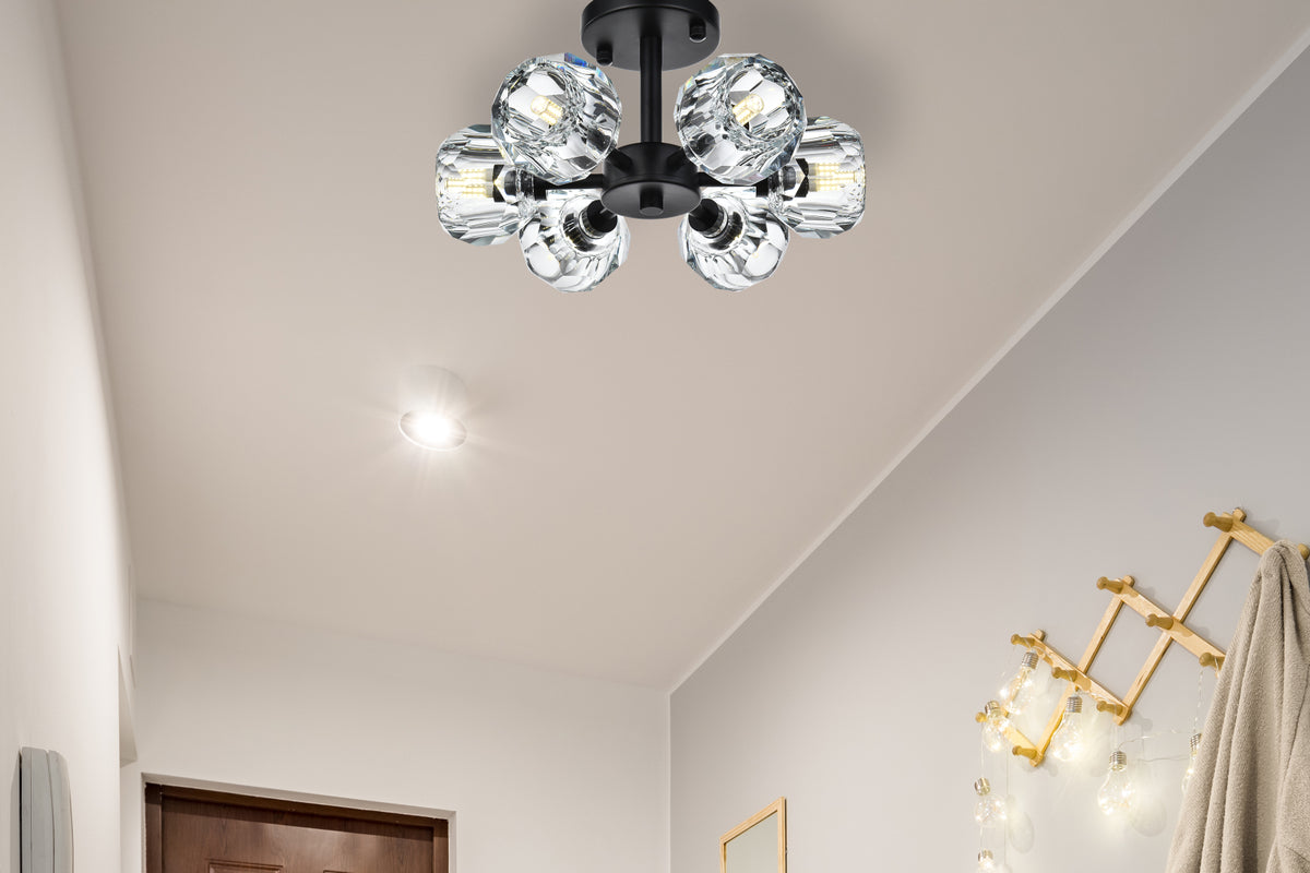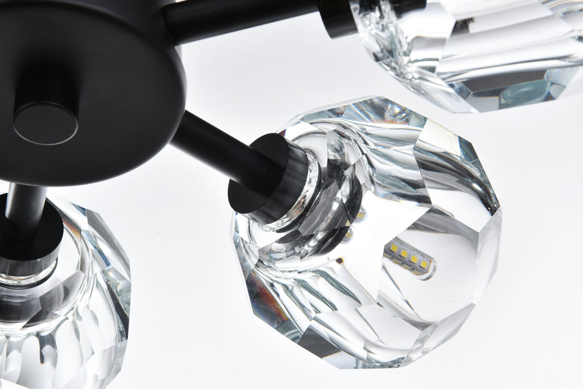 Introducing the Eren 14-inch Flush Mount—a perfect synthesis of elegance and practicality that effortlessly complements any space. With its compact size and stylish presence, this flush mount is an ideal addition to your decor. The Eren features six lights adorned with faceted crystal glass shades, casting a luxurious and timeless radiance. Crafted with durability in mind, the robust iron base adds a touch of industrial elegance to its contemporary design. Upgrade your decor with the distinctive charm of the Eren 14-inch Flush Mount.