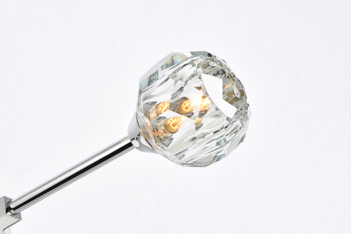 Crafted from iron metal and crystal, it features a round ceiling canopy, a hanging rod of 46 inch long, and arms extended with a solid K9 crystal ball from rods at all angles for a modern and linear look. Each 20W G9 bulb ( not included) is diffused by a faceted clear crystal ball giving the fixture a touch of industrial and glam inspiration. This work of art will add an artful focal point to your entryway, dining room, kitchen, or office. Evoking a sophisticated and timeless aesthetic to any space and will be an instant conversation started with its finely faceted crystal sphere which is polished by hand to reflect and refract light. Available in three different finishes in gold, chrome, and black.