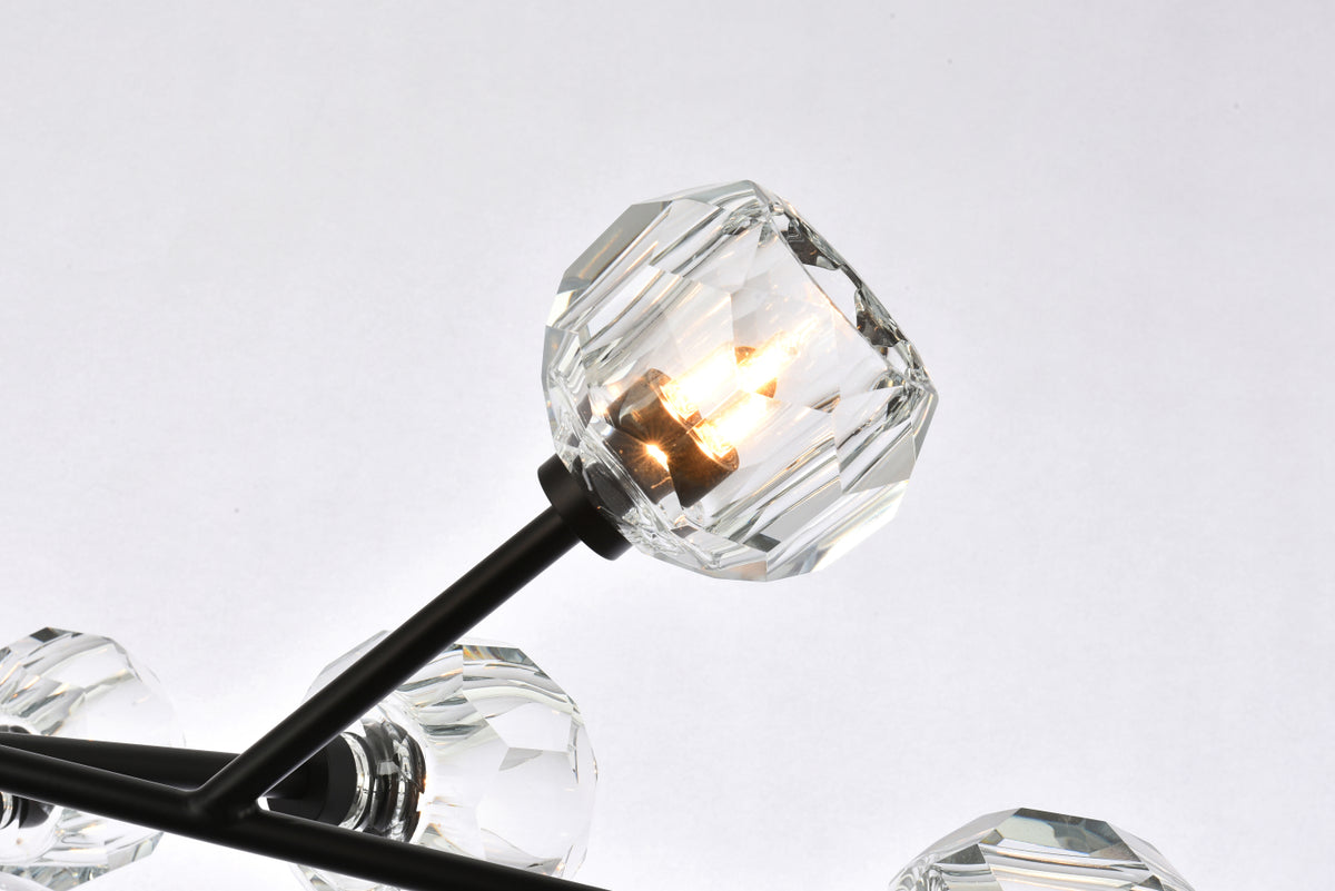 Crafted from iron metal and crystal, it features a round ceiling canopy, a 60 inch hanging chain, and arms extended with a solid K9 crystal ball from rods at all angles for a modern and linear look. Each 20W G9 bulb ( not included) is diffused by a faceted clear crystal ball giving the fixture a touch of industrial and glam inspiration. This work of art will add an artful focal point to your entryway, dining room, kitchen, or office. Evoking a sophisticated and timeless aesthetic to any space and will be an instant conversation started with its finely faceted crystal sphere which is polished by hand to reflect and refract light. Available in three different finishes in gold, chrome, and black.