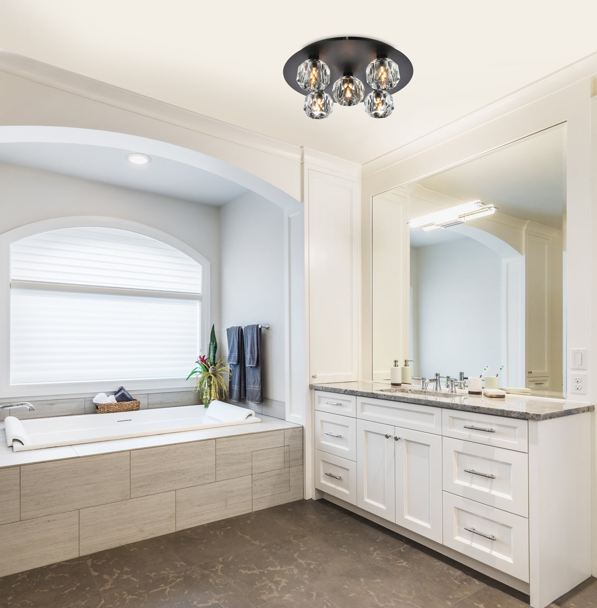 Crafted from iron metal and crystal, it features a round ceiling canopy with solid K9 crystal balls for a modern and linear look. Each 20W G9 bulb ( not included) is diffused by a faceted clear crystal ball giving the fixture a touch of glam inspiration. This work of art will add an artful focal point to your entryway, dining room, kitchen, or office. Evoking a sophisticated and timeless aesthetic to any space and will be an instant conversation started with its finely faceted crystal sphere which is polished by hand to reflect and refract light. Available in three different finishes in gold, chrome, and black.