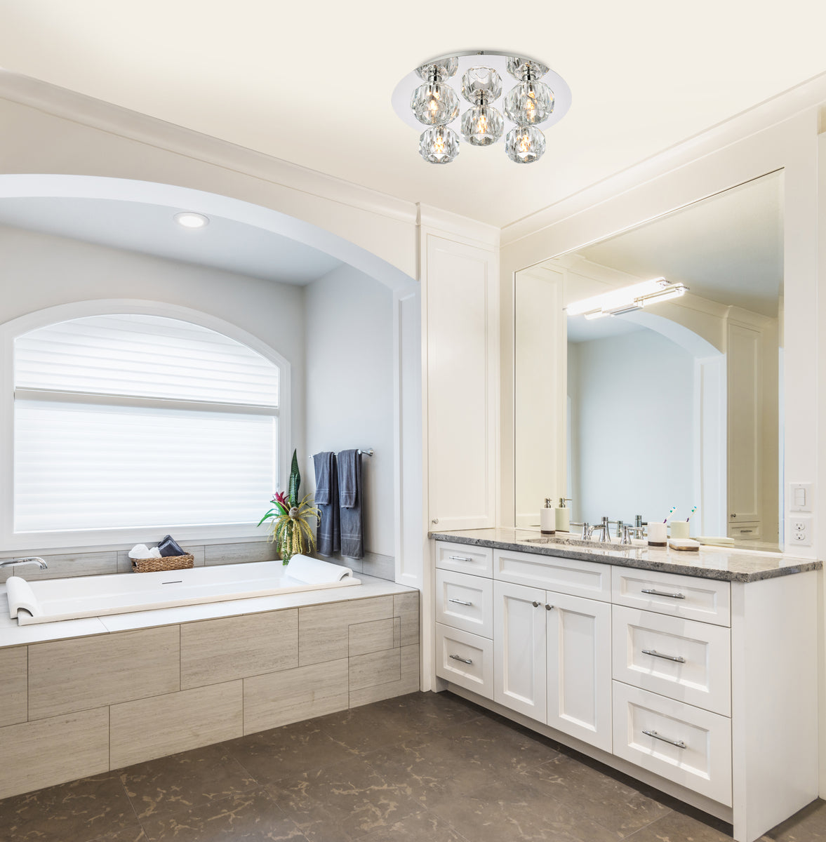 Crafted from iron metal and crystal, it features a round ceiling canopy with solid K9 crystal balls for a modern and linear look. Each 20W G9 bulb ( not included) is diffused by a faceted clear crystal ball giving the fixture a touch of glam inspiration. This work of art will add an artful focal point to your entryway, dining room, kitchen, or office. Evoking a sophisticated and timeless aesthetic to any space and will be an instant conversation started with its finely faceted crystal sphere which is polished by hand to reflect and refract light. Available in three different finishes in gold, chrome, and black.