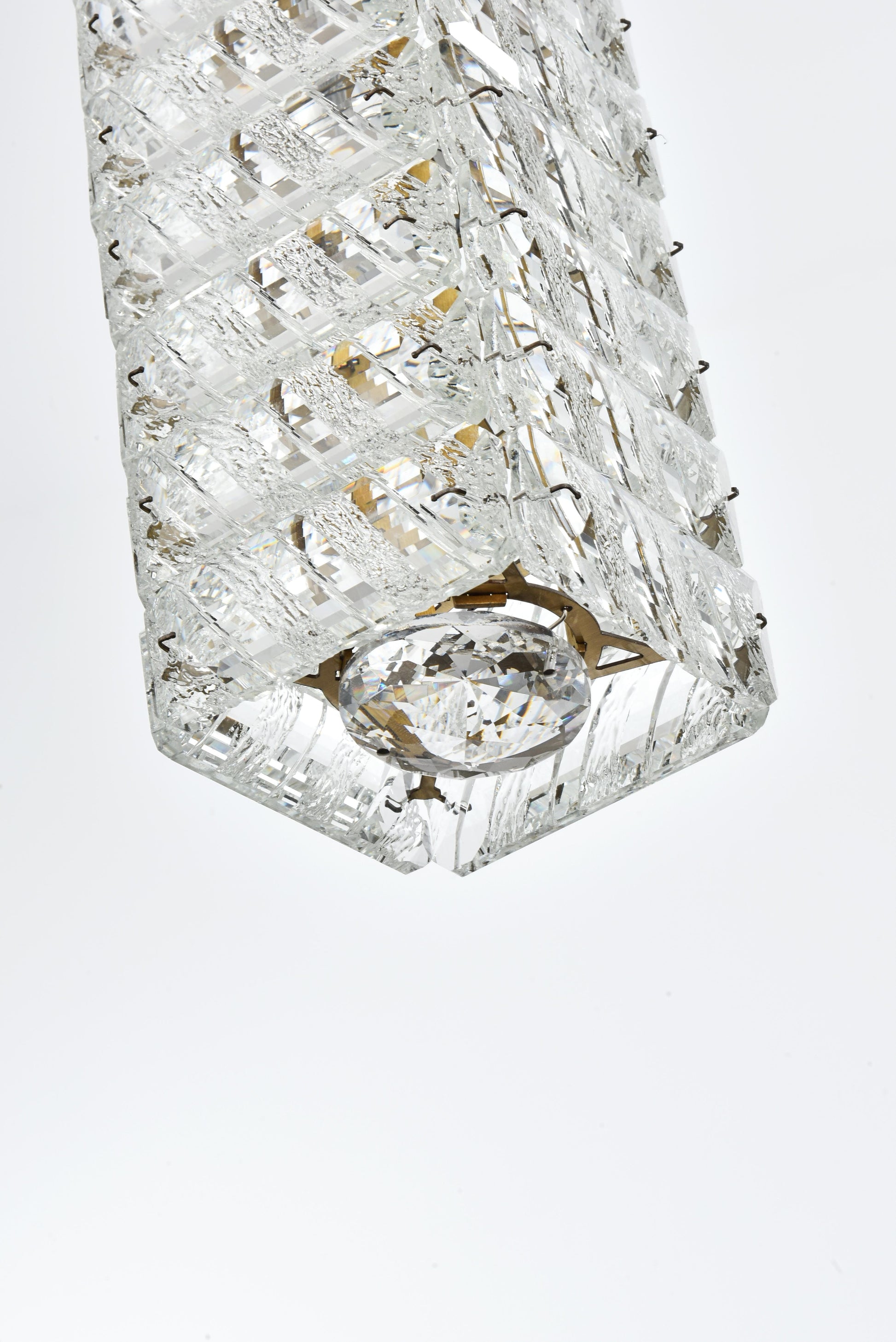 Elevate the ambiance of your space with this exquisite Crystal LED Pendant Light. Featuring a sleek four-sided rectangular shape, this pendant is adorned with clear crystals that resemble elegantly stacked ice. The addition of a round crystal diffuser at the bottom enhances the light's radiance, making it a focal point in any room. Transform your home with the Crystal LED Pendant Light, combining modern design with high functionality. Its sophisticated crystal design, adjustable lighting, and customizable hanging configurations make it a perfect addition to any contemporary space. Illuminate your home with style and elegance today.