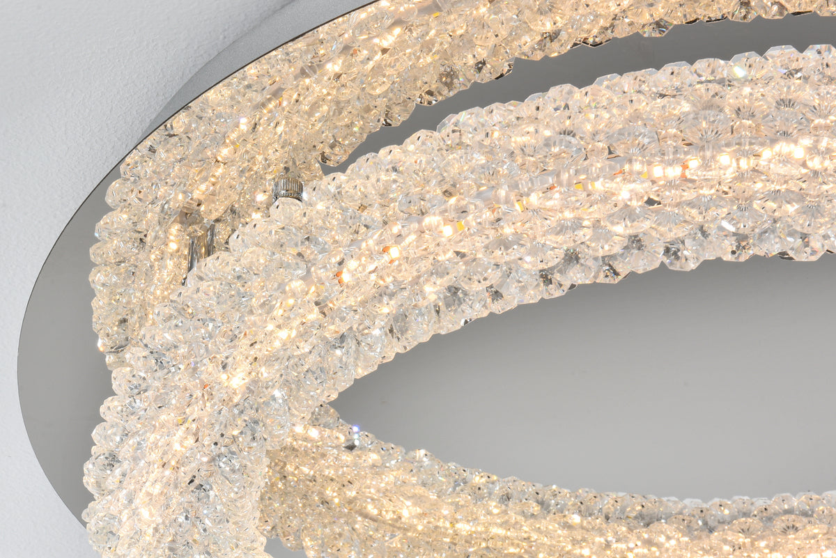 Illuminate your surroundings with the enchanting Bowen 22 inch LED Flush Mount, showcasing a captivating round crystal-adorned design for a touch of sophistication. With an impressive LED lifespan of 20,000 hours, this light delivers enduring brilliance to your space. Enjoy a swift and user-friendly installation experience with no assembly required. Choose from three color temperatures (3000K, 4500K, 6000K) to set the perfect mood. Crafted with durable Iron and Crystal materials, ETL listed for safety compliance, and featuring integrated LED technology, this flush mount ensures long-lasting and hassle-free illumination.