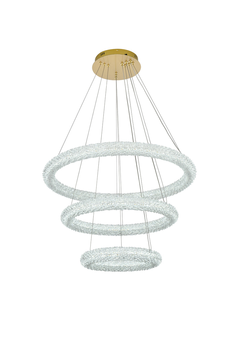 Illuminate your space with the enchanting Bowen 32 inch LED three-tiered Chandelier. This light boasts an impressive LED lifespan of 20,000 hours, providing enduring brilliance for your space. No assembly required, ensuring a swift and user-friendly installation experience. Choose from three color temperatures (3000K, 4500K, 6000K) to set the perfect mood for any occasion. Crafted with durable Iron and Crystal materials for long-lasting reliability. ETL listed for safety compliance, ensuring a secure and reliable lighting solution. Integrated LED technology means you'll never have to buy bulbs, ensuring long-lasting and hassle-free illumination.