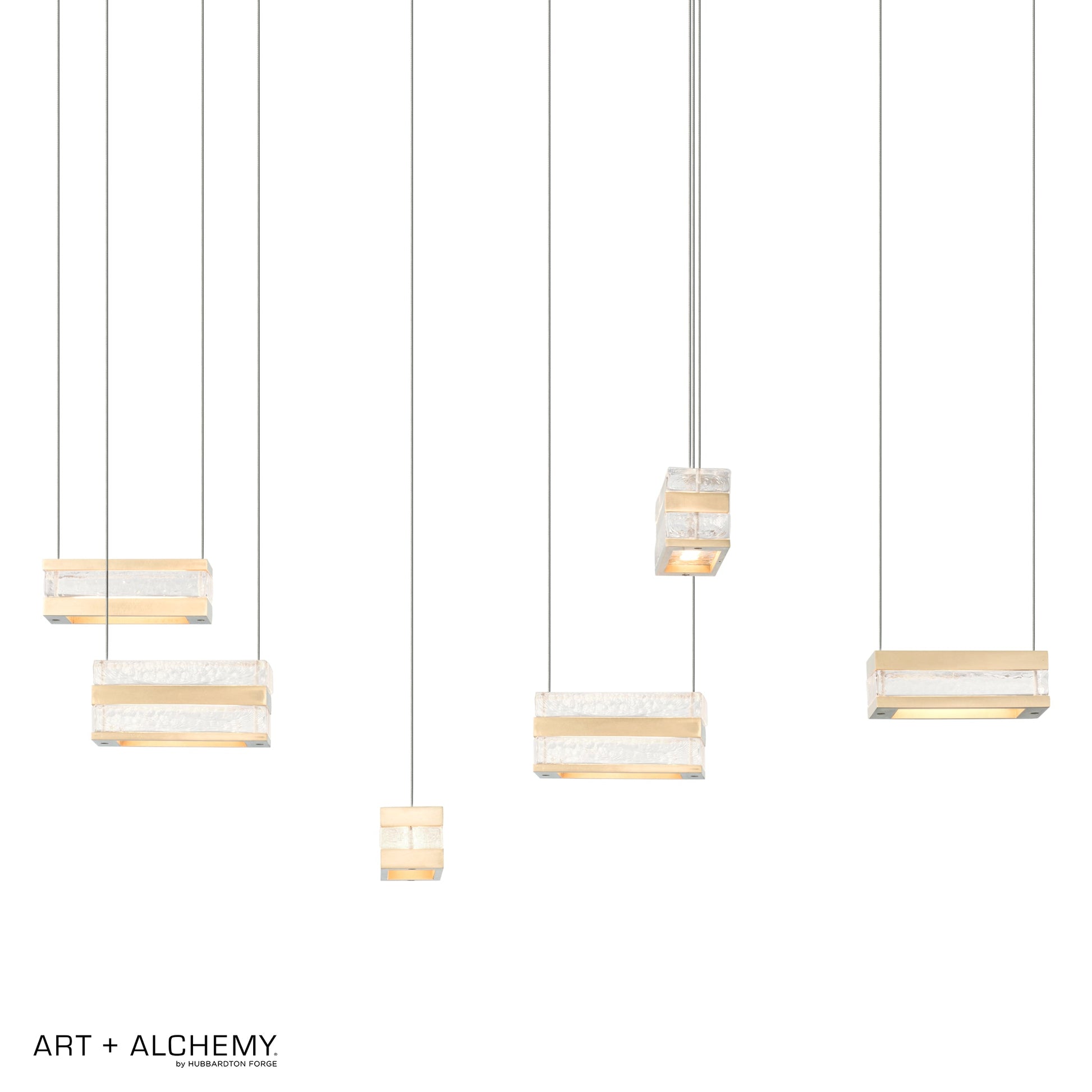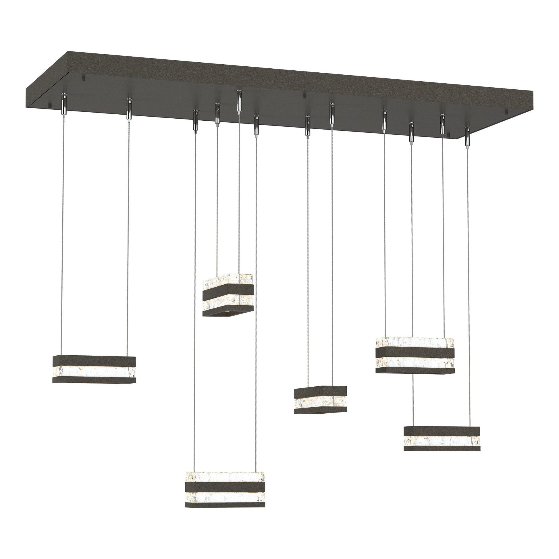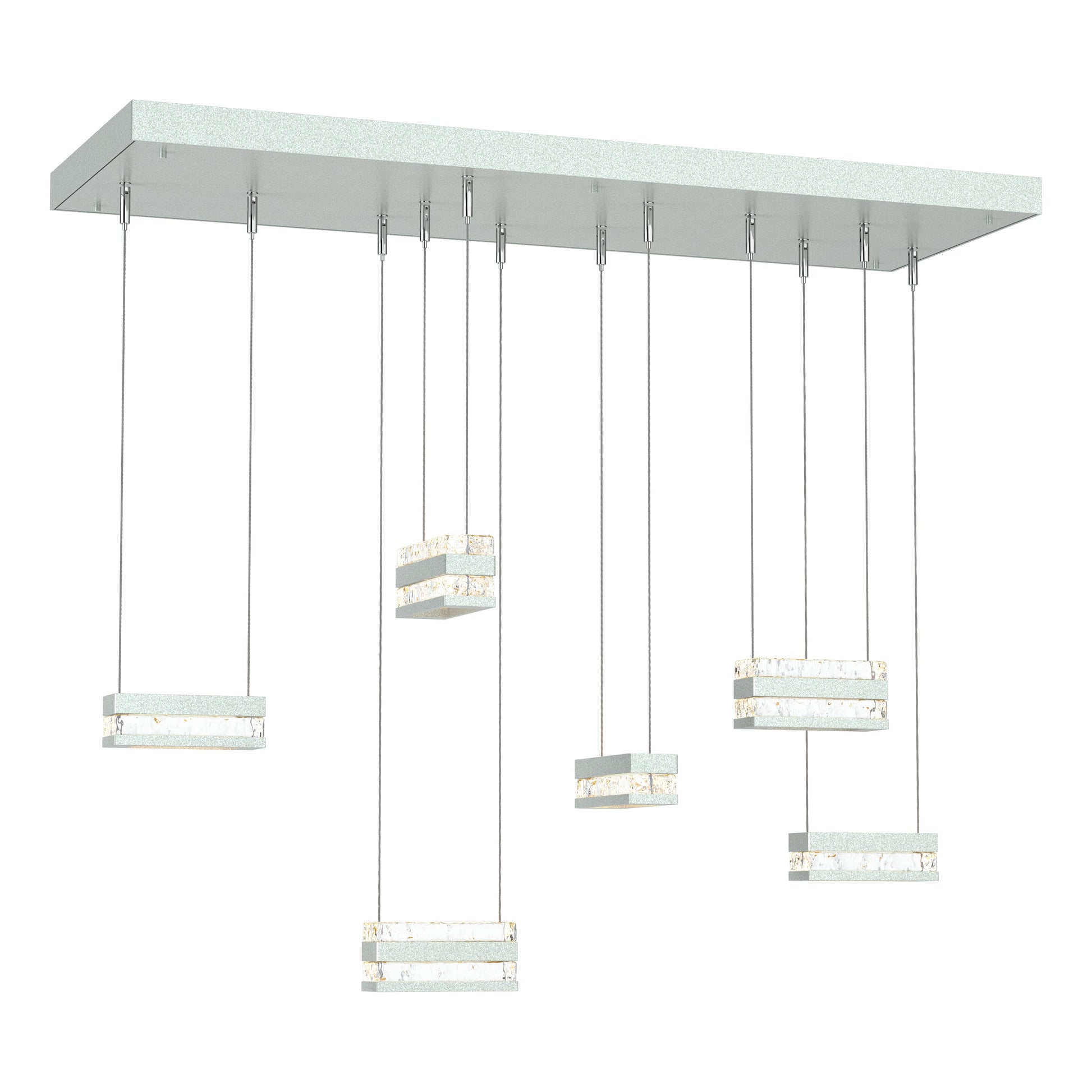 Make a statement in any room with the one-of-a-kind Stacks 6-Light Pendant. The thick, clear, hand-poured blocks of glass ooze elegance, while the billet aluminum is foundational to the style of this light. The conductive LED cables pierce through the glass and aluminum stacks, providing a unique light element to its space. Stacks Pendant brings a minimalist, architectural aesthetic to your home.