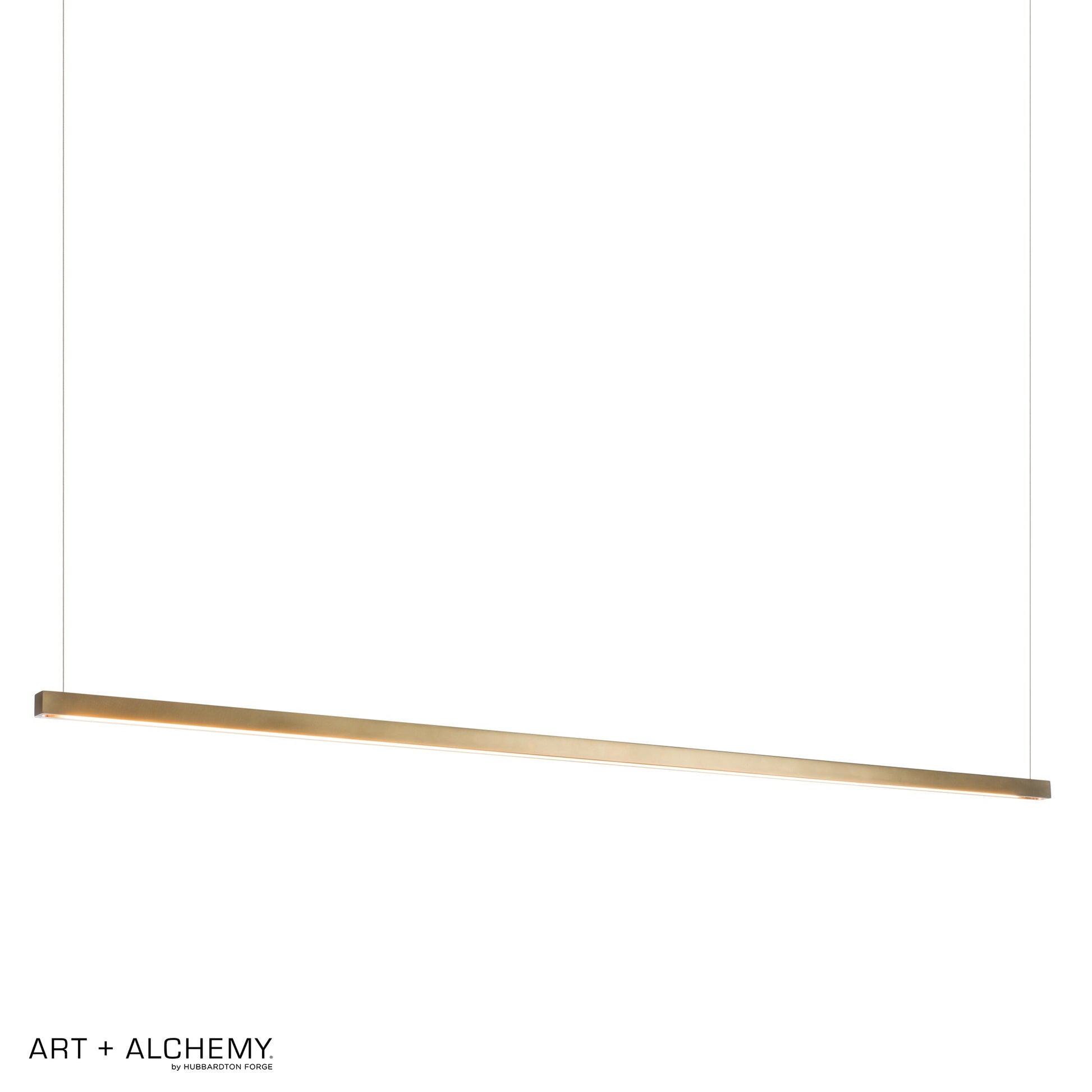A traditional symbol of good luck, the Ingot can be made of various metals. Ours is of steel and can be finished in any of our 11 standard interior options, including Modern Brass. Deceptively simple and sleek, the Ingot houses an LED element for crisp, functional lighting. Perfect over a large desk, pool table, dining table, kitchen island or bar, or in multiples over a reception area, the Ingot's minimal profile suits a variety of styles. Love it, but need it longer? Talk with our on-site Customs team. We can do that!