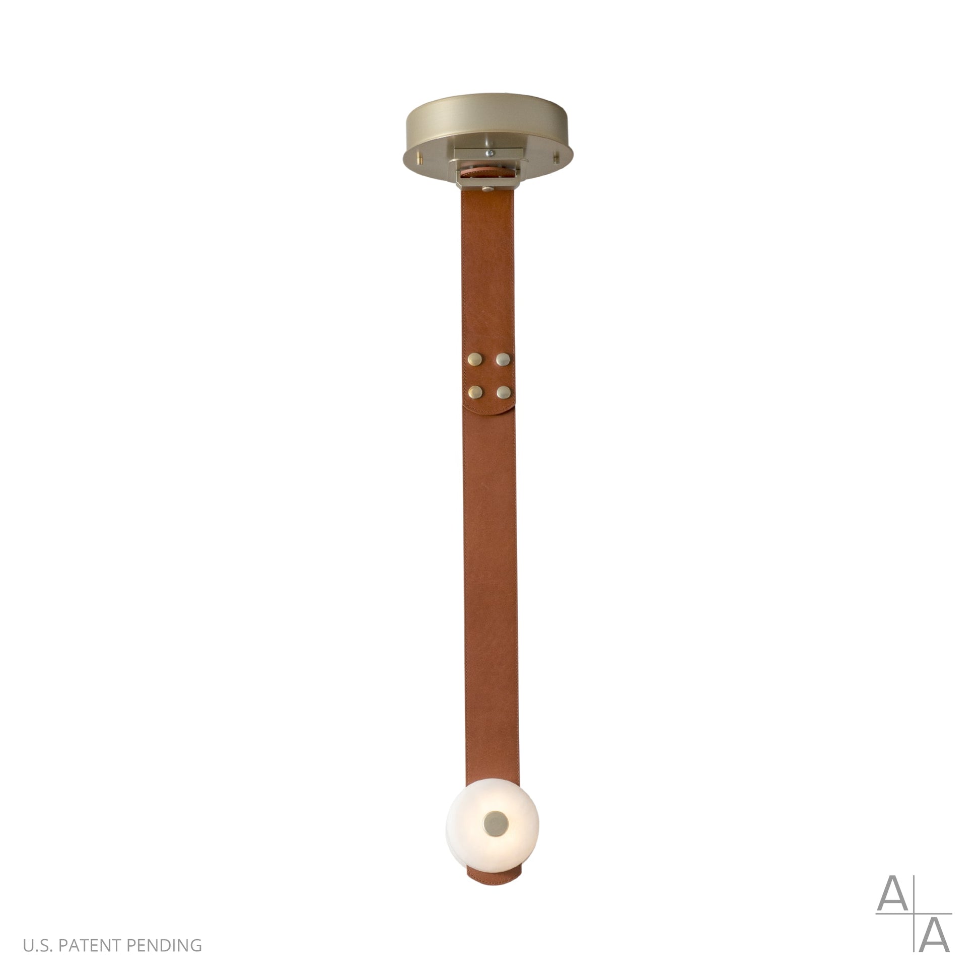 The SNAPS Small LED Pendant designed by HF's Andy Morter features a single alabaster stone-LED element on a long strap, with an additional, shorter fine-grain leather extension strap. An integrated "mini mount" allows a remote driver installation for a minimal wall mount appearance. Part of the ART + ALCHEMY by Hubbardton Forge Collection. Unleash your creativity by ordering one of these extension pieces: 905700, 905701, 905712, 905713
