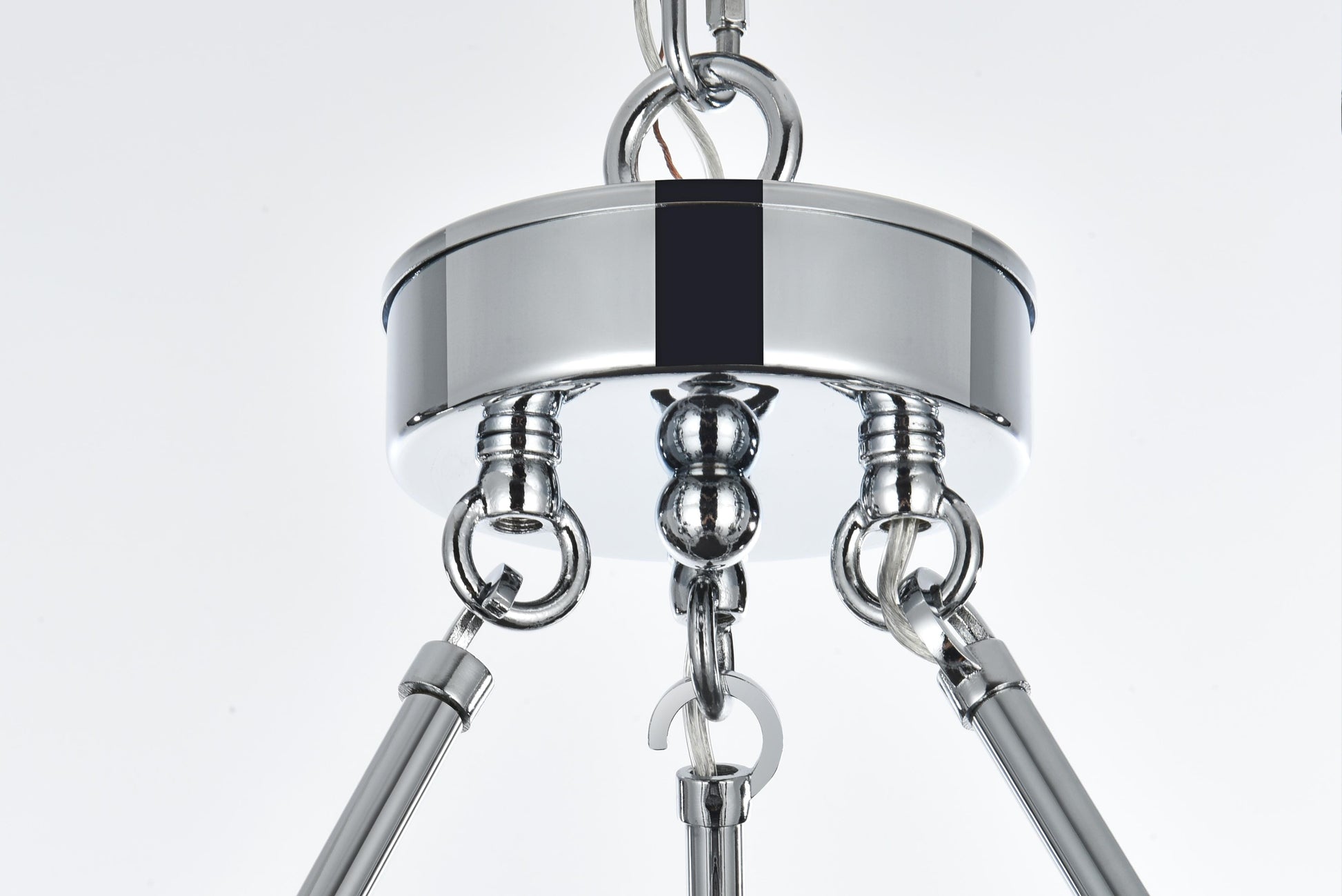 Add modern charm to your space with this striking chandelier, where a sleek circular iron frame meets sculpted clear glass shades. The unique design features decorative hanging rods with hooks, enhancing the structure with industrial flair. The clear glass refracts light beautifully, creating a radiant glow that uplights your space with warmth and dimension. Perfect for dining rooms, living rooms, or offices, this chandelier is available in black for a bold contrast, satin gold for a luxurious touch, and chrome for a sleek, modern vibe. With multiple size options and a matching canopy and chain for seamless installation, this dimmable chandelier offers both beauty and versatility. Light bulbs are not included, allowing you to choose the perfect style to match your vision.