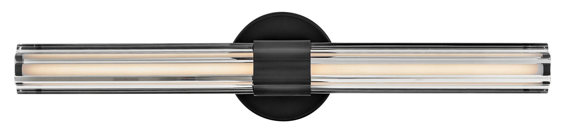 Georgette’s sophisticated silhouette is enhanced by clear fluted crystal, creating a stunning fixture with bold symmetry and captivating details. A chic central cuff and back plate provide balance and contrast that effortlessly complements any space with a Black Oxide or Lacquered Brass finish.