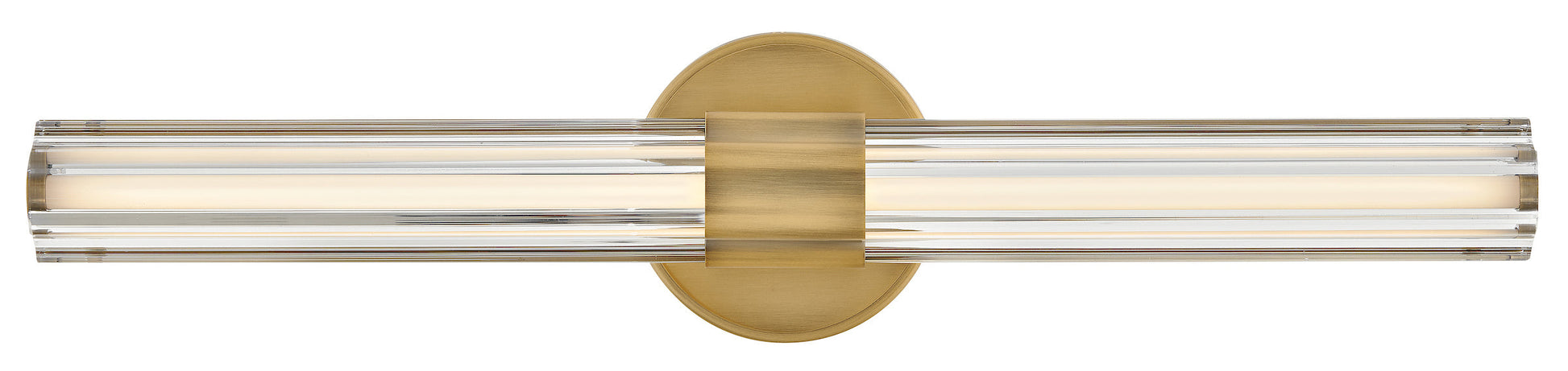 Georgette’s sophisticated silhouette is enhanced by clear fluted crystal, creating a stunning fixture with bold symmetry and captivating details. A chic central cuff and back plate provide balance and contrast that effortlessly complements any space with a Black Oxide or Lacquered Brass finish.