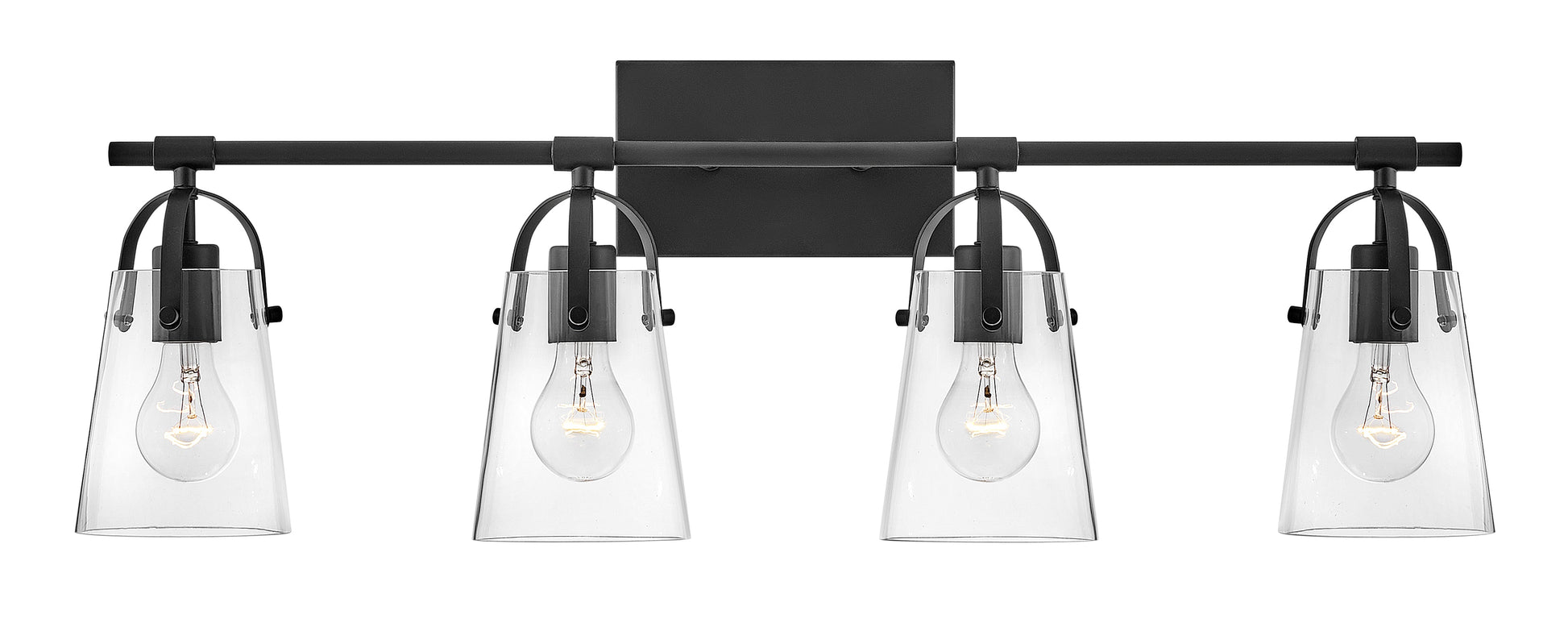 Clean and airy, Foster breathes composed simplicity into any bath space. Softly tapered glass shades suspended from arched handle prongs create a sophisticated transitional silhouette, enhanced by practical yet stylized details.