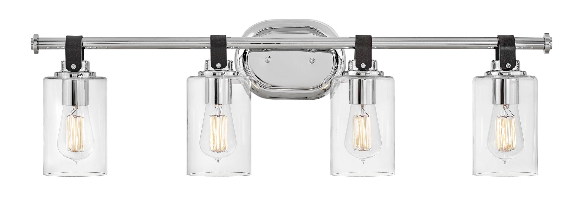 Halstead evokes Modern Americana at its finest. Designed with an equestrian flare in mind, a faux leather finished strap reinforces a rustic simplicity that harmonizes with the modern refinement of clear glass shades. Offered in a Chrome or Heritage Brass finish, Halstead’s versatility makes it the perfect “anywhere” design.