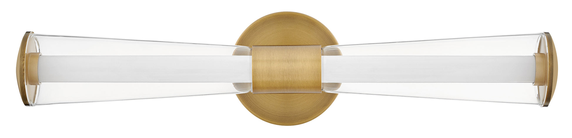 The centerpiece of Elin's bold and contemporary design is a trumpet-shaped clear outer glass that highlights an integrated LED inner light source. Featuring both conventional and striking elements, Elin is ideal for modern and transitional interiors and available in Black or Lacquered Brass finish options.