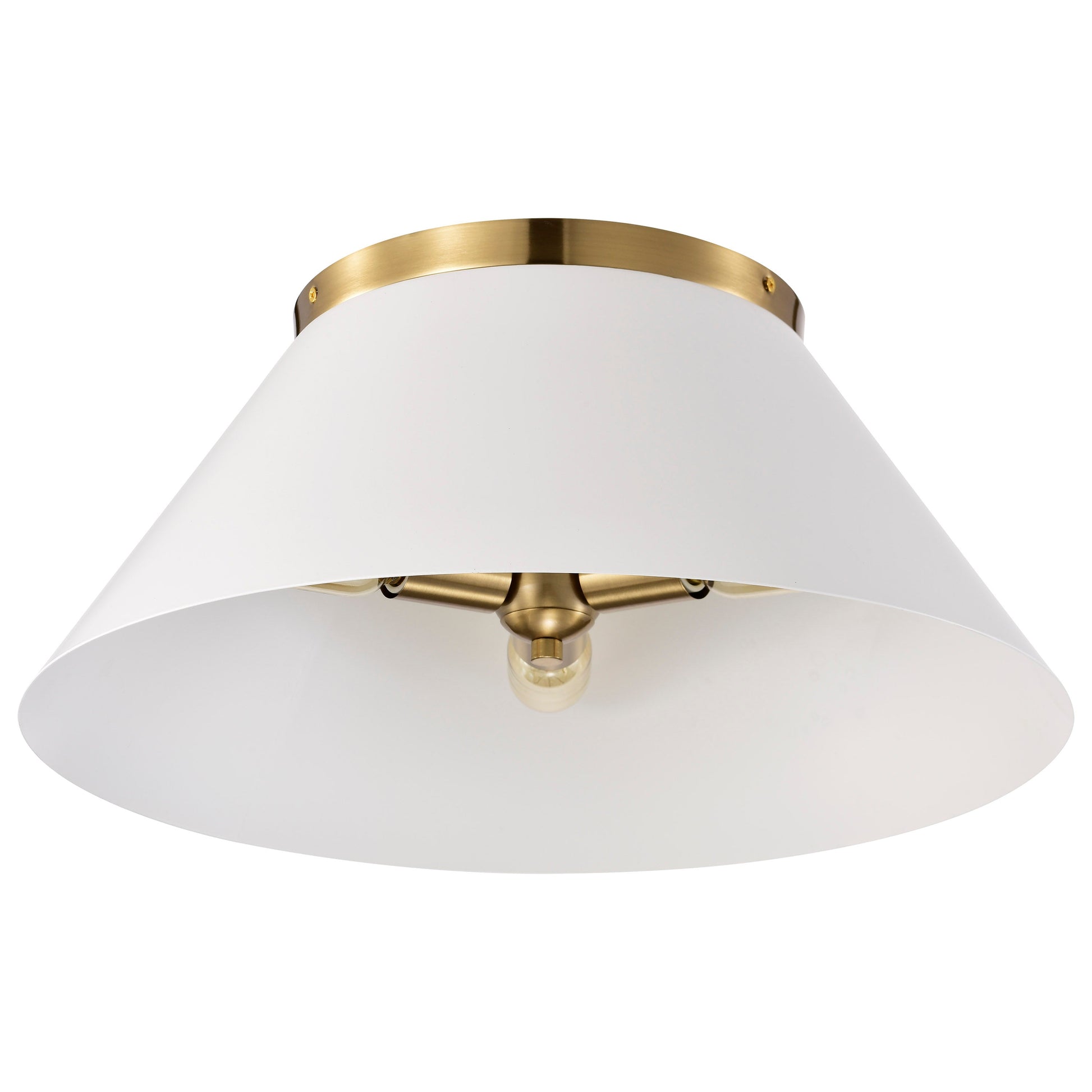 Dover; 3 Light; Large Flush Mount; White with Vintage Brass