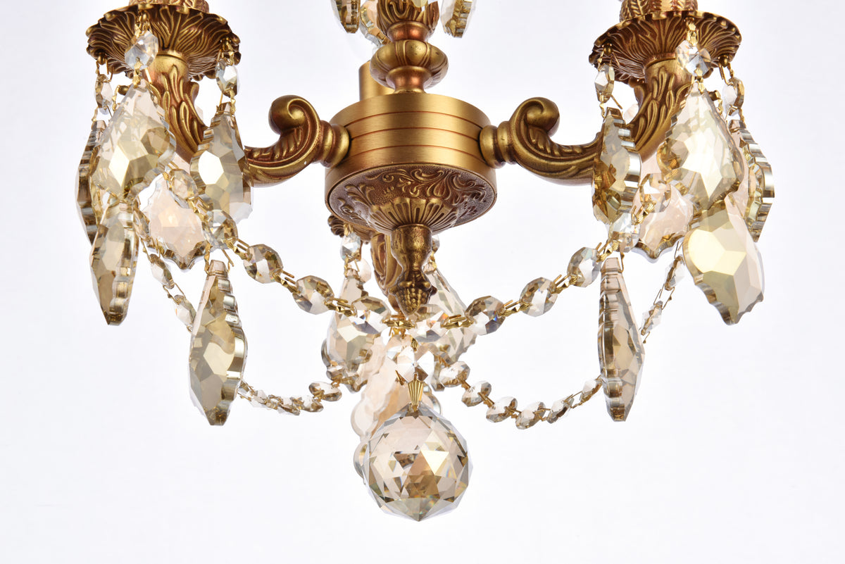 Lillie 3 light French Gold Pendant Golden Teak (Smoky) Royal Cut Crystal