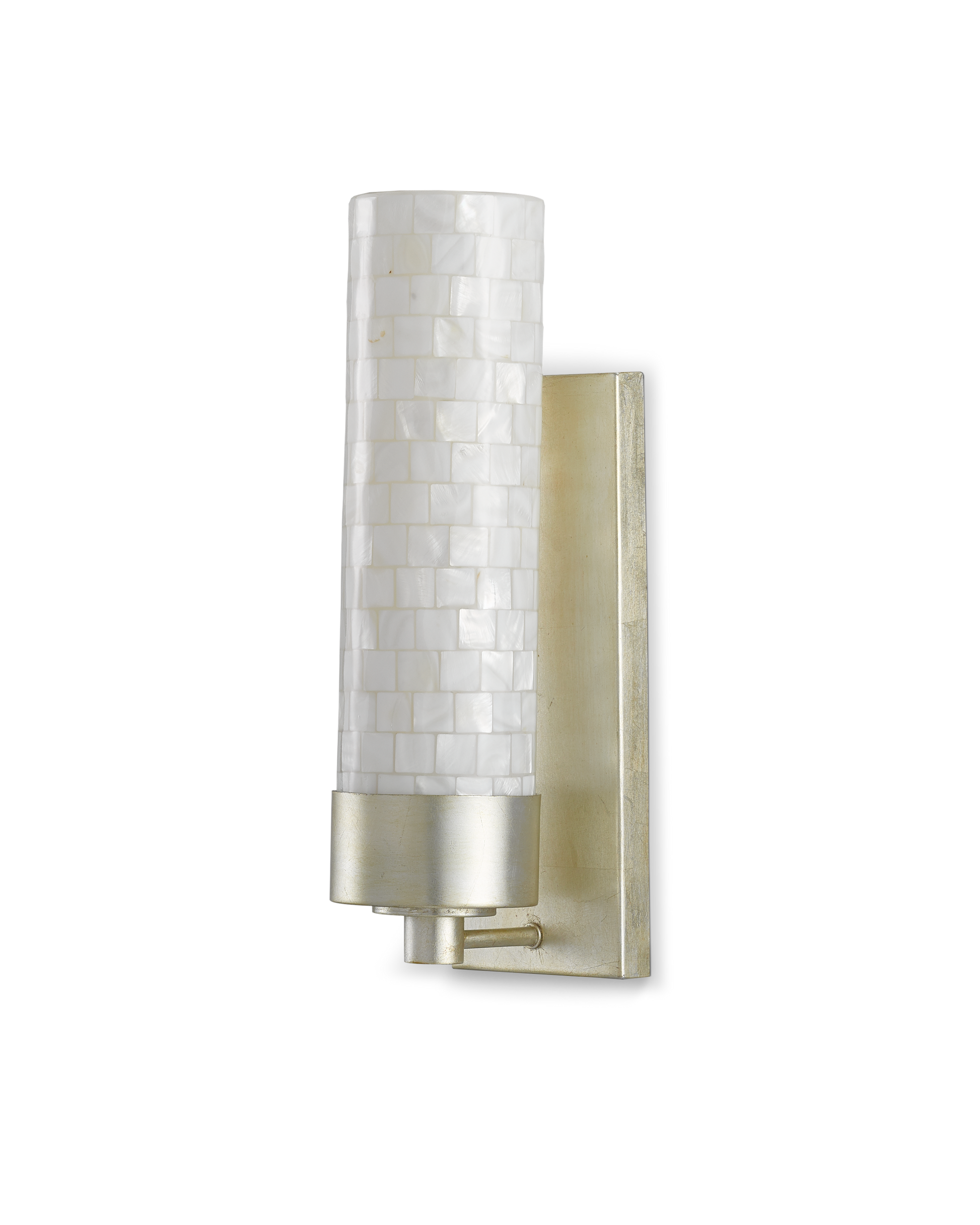 The Abadan Wall Sconce has a stylish thin canister shade made of luminous mother of pearl. When the lights are switched on, the surface of the shell ignites to make the polished nickel metal on this silver wall sconce just as radiant. Its designer Clarence Millari says it's a terrific fit for a hallway or a bath.