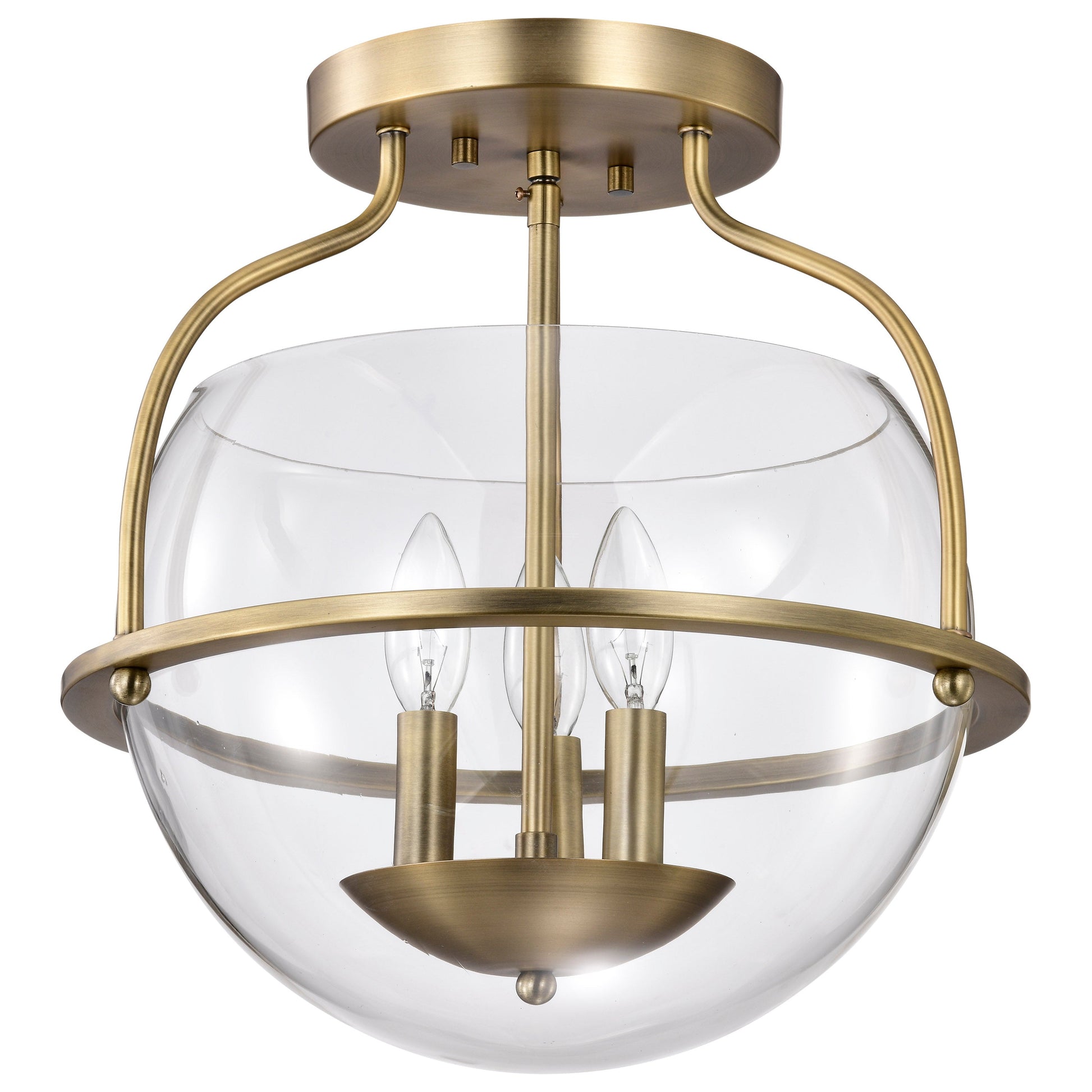 Amado 3 Light Semi Flush Mount; Vintage Brass Finish; Clear Glass