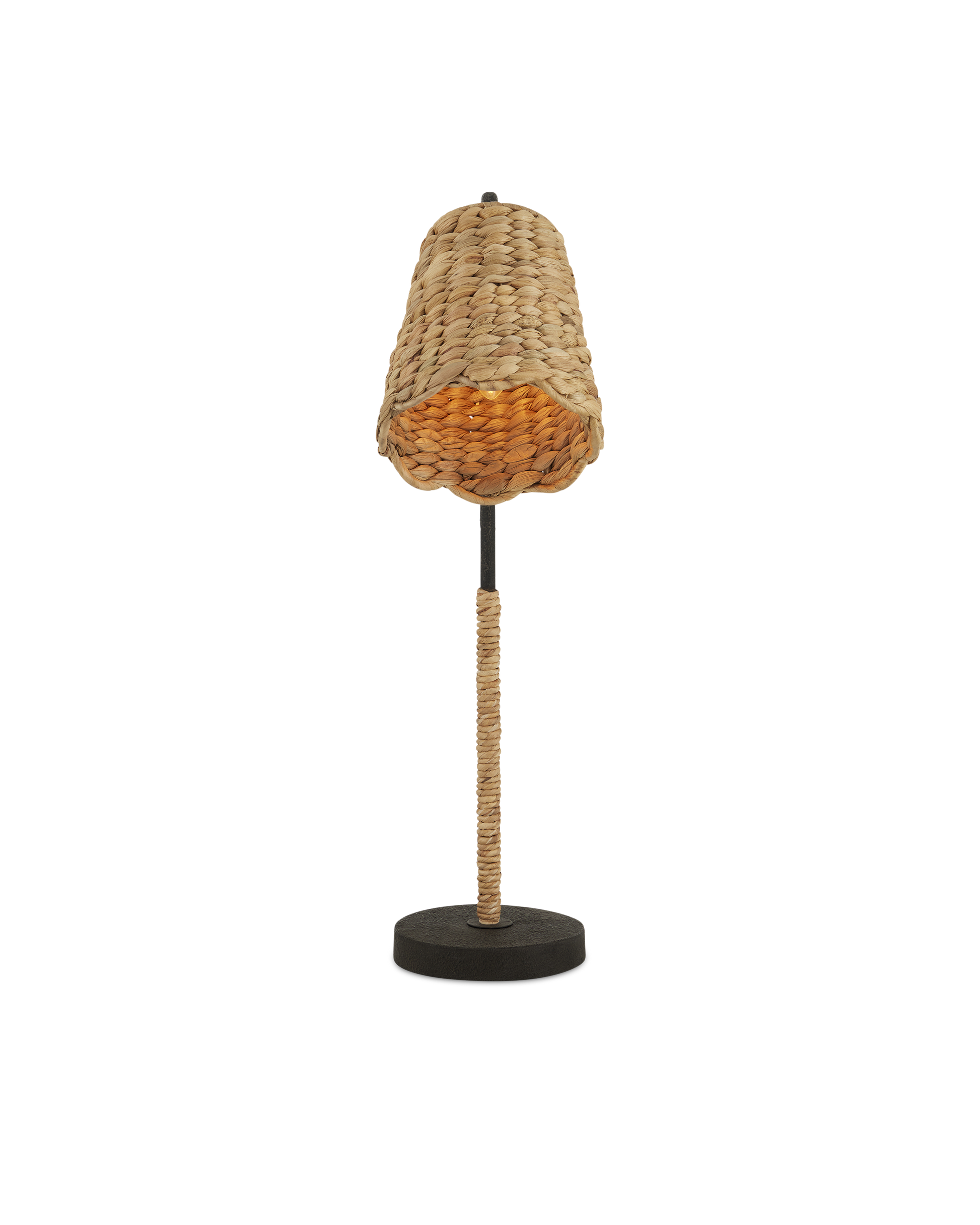 Suzanne Duin, who founded the Houston shop and design studio Maison Maison, conceived the Annabelle Desk Lamp. Known for a keen eye in sourcing authentic French antiques and home accessories from around the globe, Suzanne has created a line of woven light fixtures that are handmade by artisans in South Asia. The shade is made of water hyacinth, which brings a textural artistry to the composition. Equally sophisticated is how the thin stem is wrapped in the same natural material. The mole black finish on the woven lamp contrasts the beige tones beautifully.