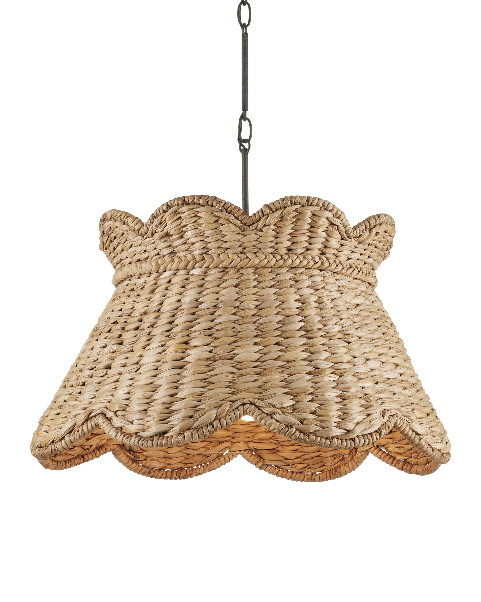 Suzanne Duin, who founded the Houston shop and design studio Maison Maison, conceived the Annabelle Large Pendant. Known for a keen eye in sourcing authentic French antiques and home accessories from around the globe, Suzanne created a line of woven light fixtures that are handmade by artisans in South Asia. The shade, made of water hyacinth, will bring both texture and French flair to a space, the braided edges fine treatments that reflect Parisian style. Infuse a breakfast nook with the lore of the city’s famous cafés with this woven pendant, which is au courant in a mix of natural and mole black finishes. Adjustable from 22.75" to 68.75" with use of included chain/rod kit/cable. If your space calls for a longer drop, additional chain/rods/cable is available for purchase.