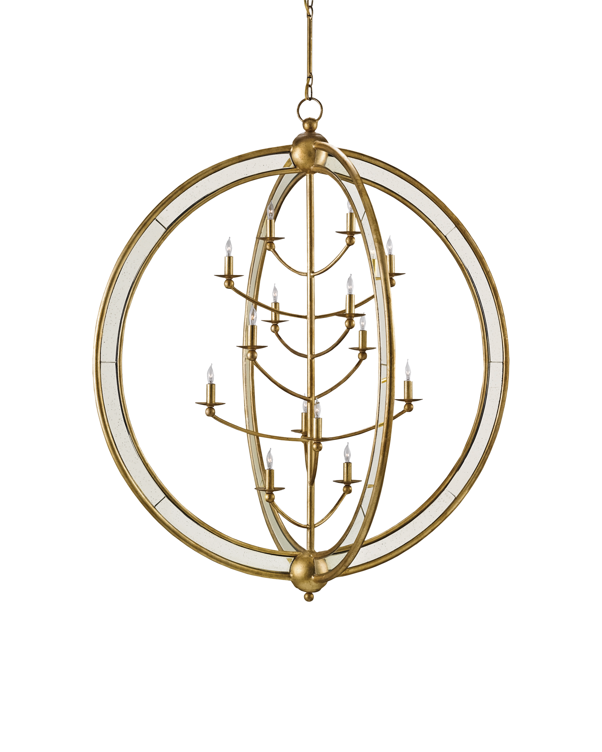 A paragon of beauty, the Aphrodite Orb Chandelier is a large-scale, mirrored chandelier with a classic profile. Spikes of light are set atop gently curving arms in a gold Granello finish. These branch outward from a central column to add luminosity to the oblong rings covered in antique mirror. Adjustable from 63" to 100" with use of included chain/rod kit/cable. If your space calls for a longer drop, additional chain/rods/cable is available for purchase.