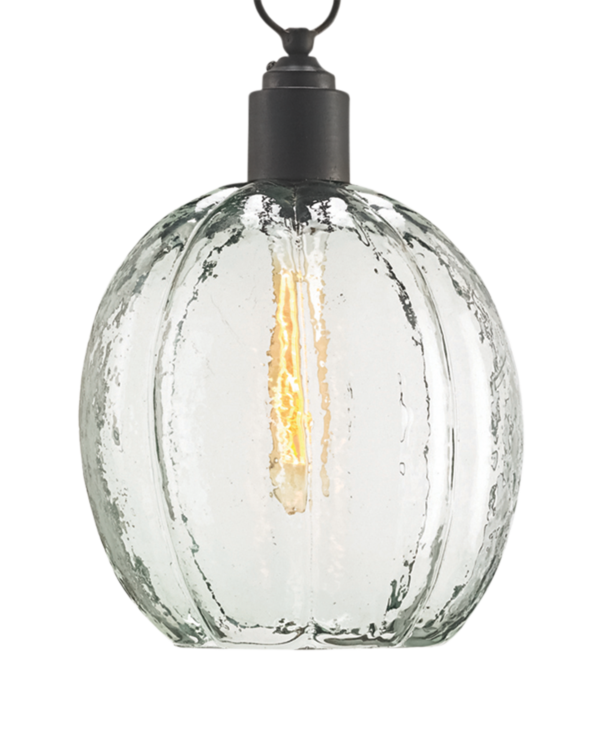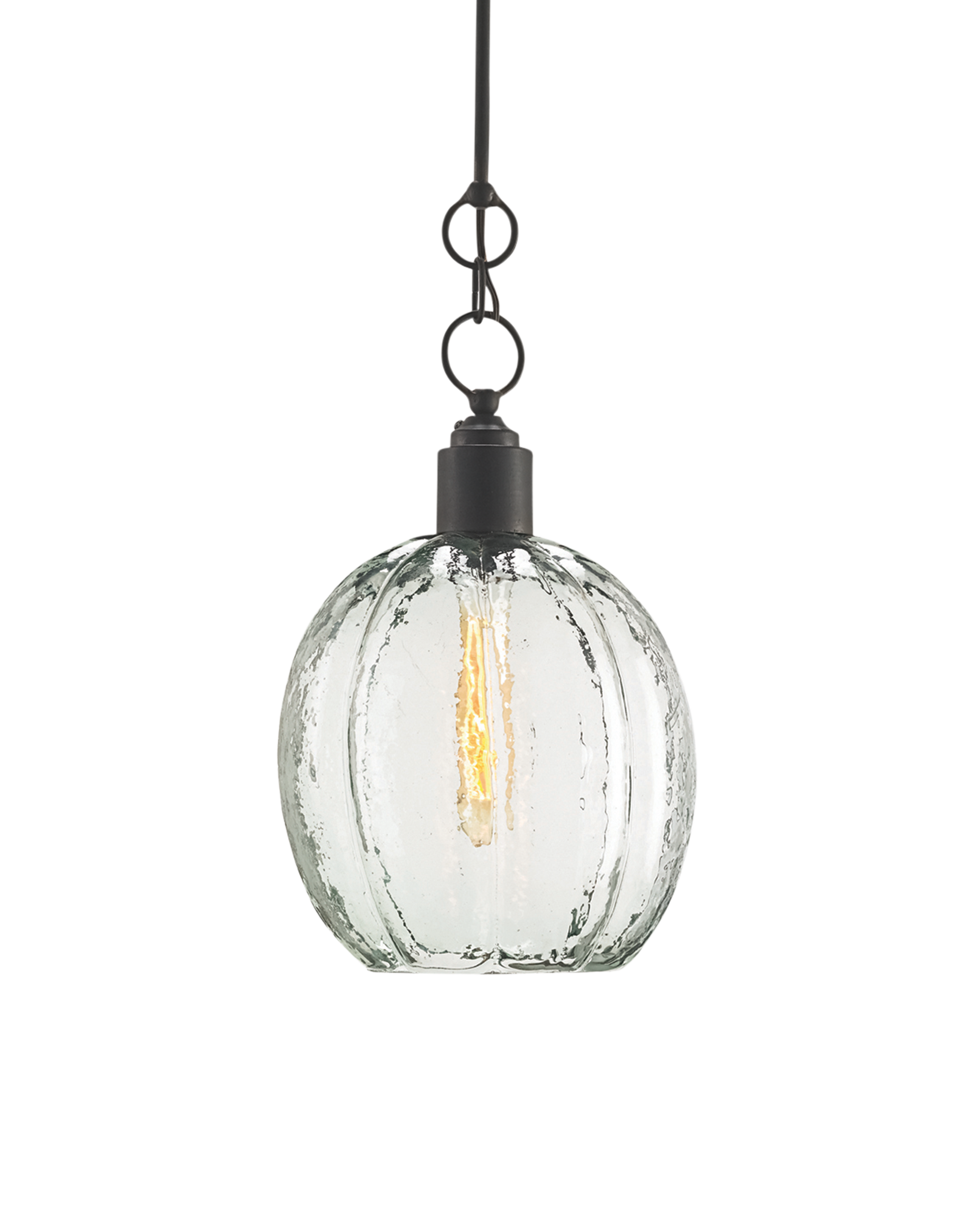 The Aquaterra Pendant with its recycled glass shade has a loveliness not often associated with recast glass. This is because the glassblower achieved a surface that reads like water frozen into a globe shape. An old-iron finish is a contrasting element on the glass pendant, which has an adjustable hanging height. Adjustable from 29" to 98" with use of included chain/rod kit/cable. If your space calls for a longer drop, additional chain/rods/cable is available for purchase.