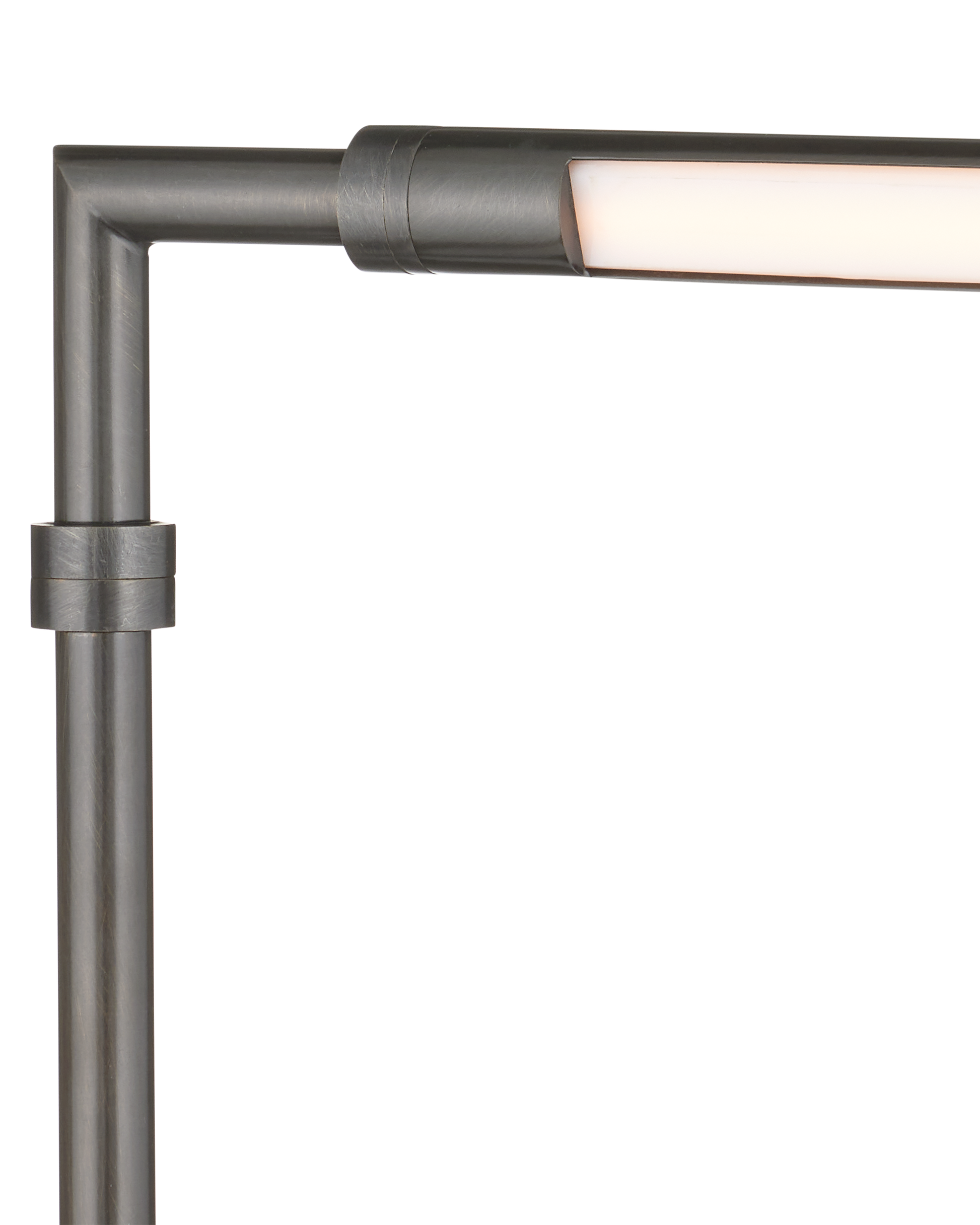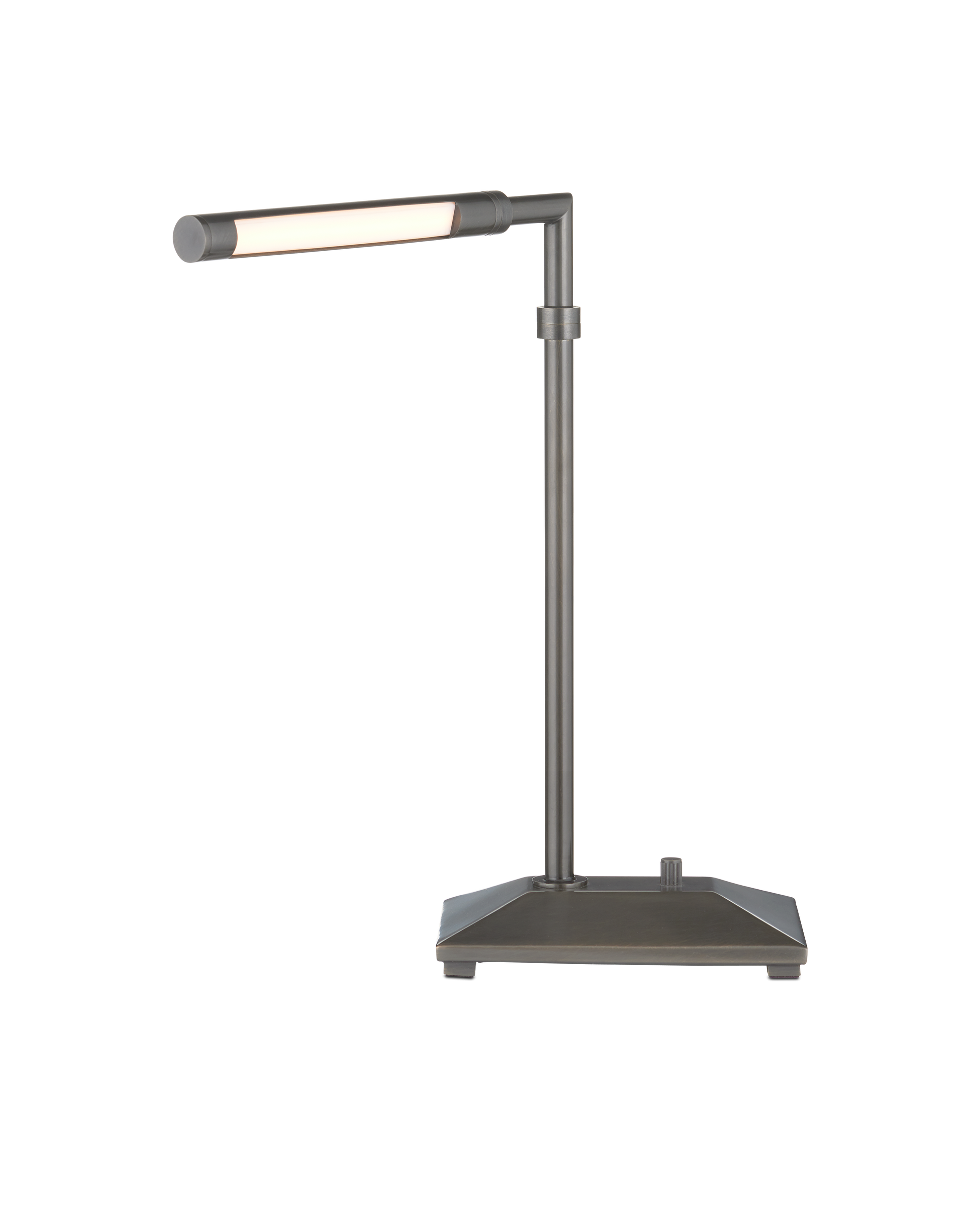 The Autrand Bronze Desk Lamp is a nimble fixture that focuses illumination wherever it is needed most, as it swivels from side to side and the tubular shade on the top arm can be maneuvered to cast light up, down, or right to left. Made of metal in an oil-rubbed bronze finish, the simple lines of this desk lamp make it great for any number of interior styles, including contemporary. The black lamp has a dimmer switch and is lit with integrated LED technology.