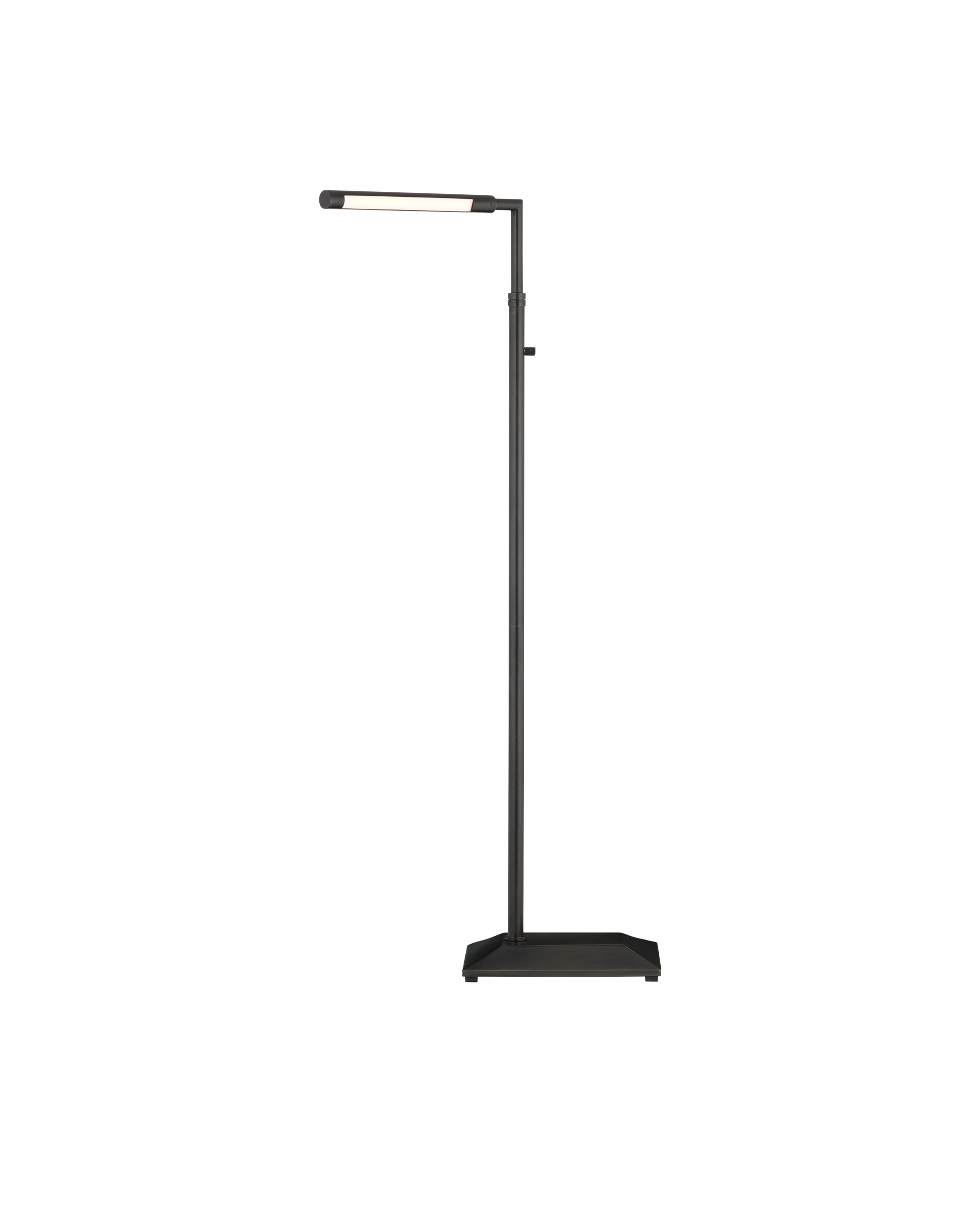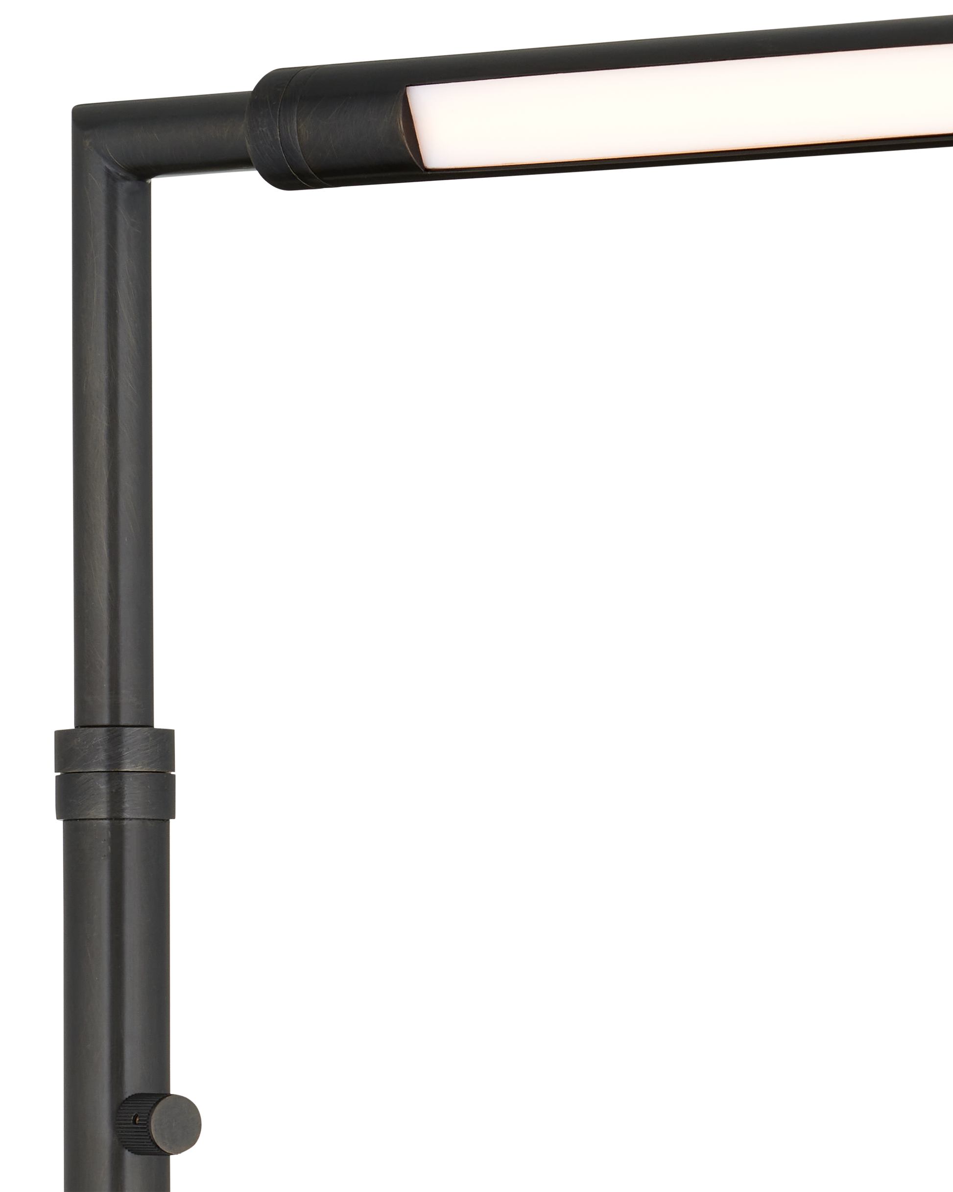 The Autrand Bronze Floor Lamp is a nimble fixture that focuses illumination wherever it is needed most, as it swivels from side to side, and the tubular shade on the top arm can be maneuvered to cast light up, down, or right to left. Made of metal in an oil-rubbed bronze finish, the simple lines of this black floor lamp make it great for any number of interior styles, including contemporary. The fixture has a dimmer switch and is lit with integrated LED technology.