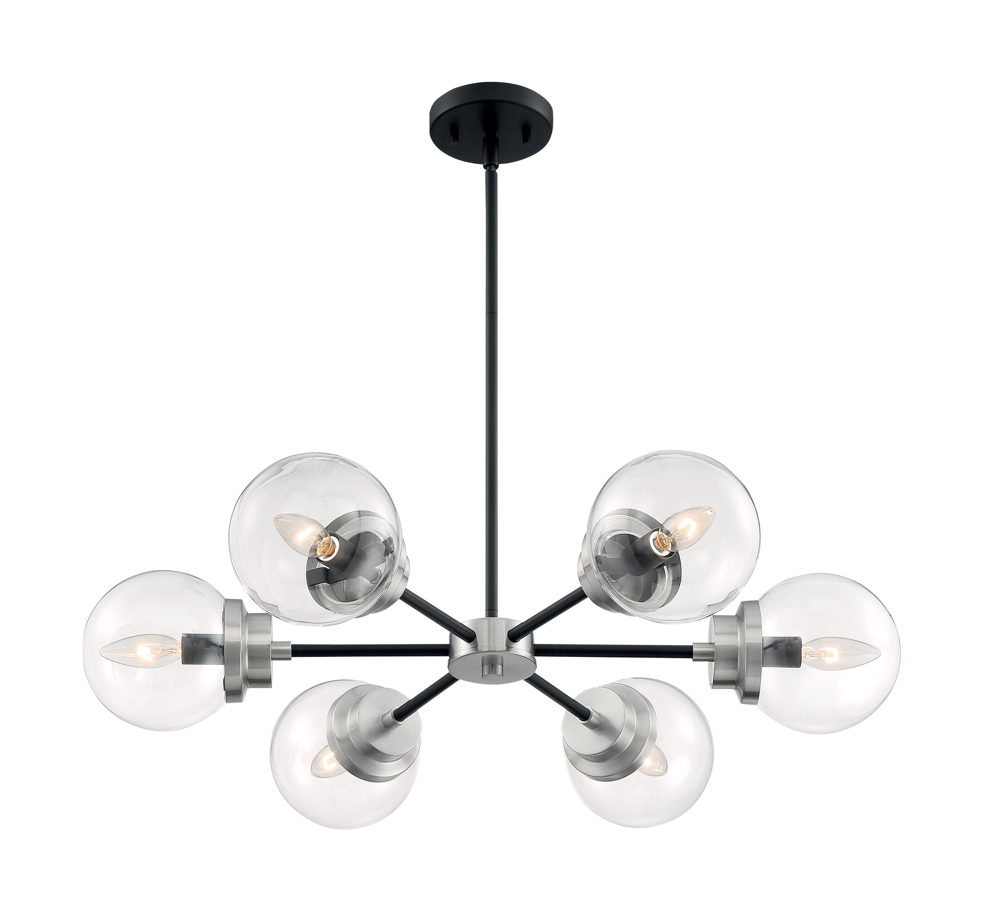 Axis; 6 Light; Chandelier Fixture; Matte Black Finish with Brushed Nickel Accents; Clear Glass