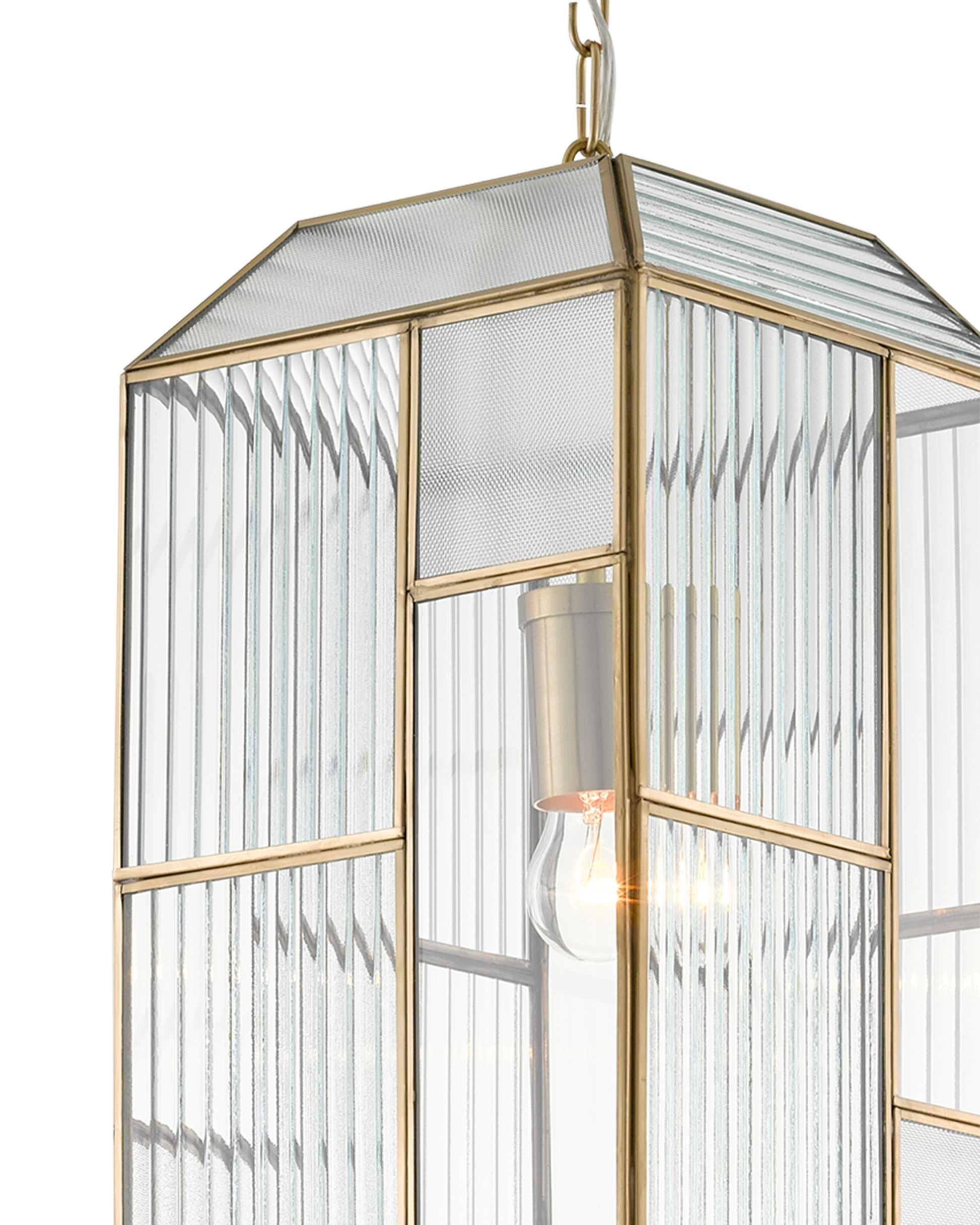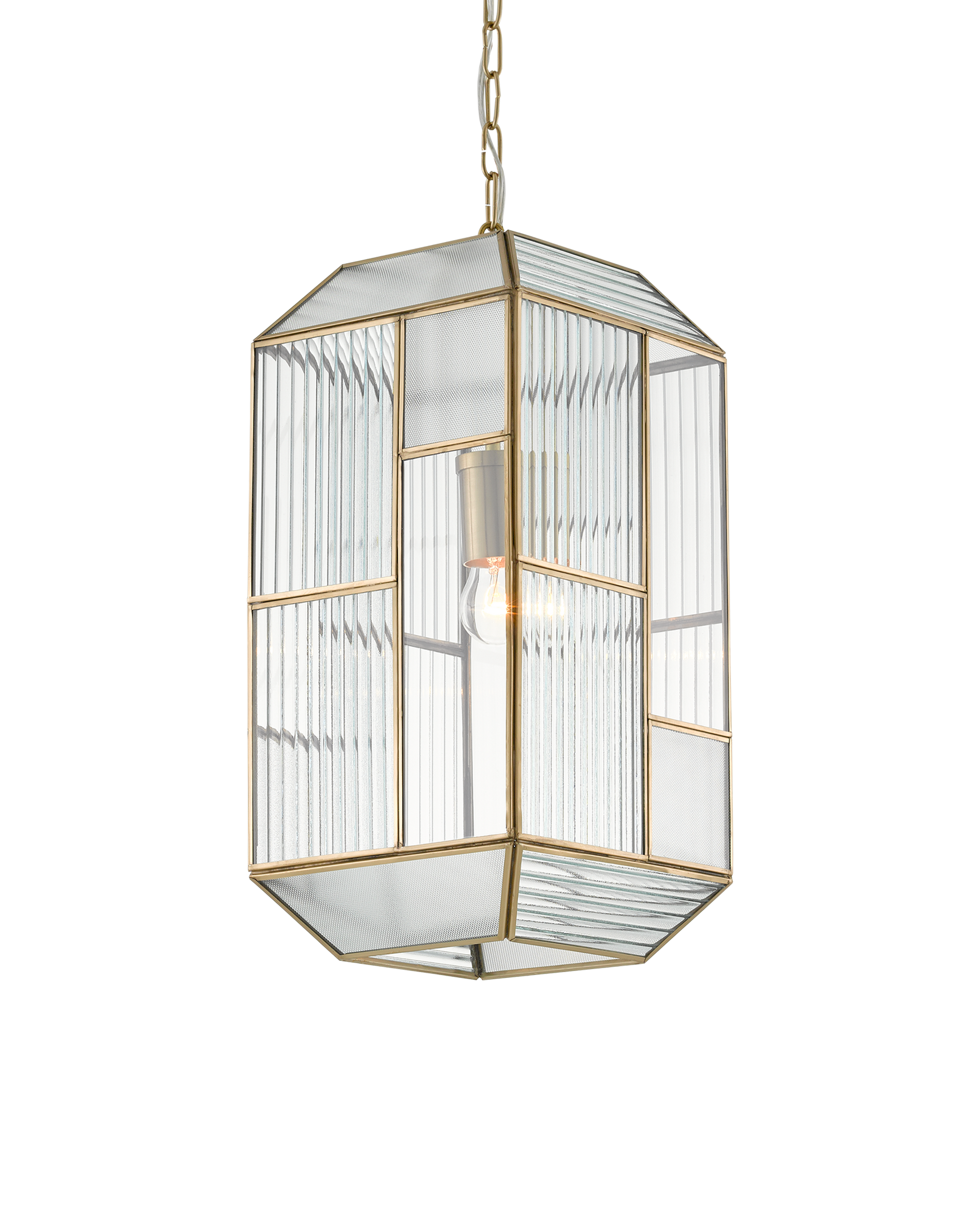 When Clarence Mallari designed the Bardolph Pendant, he was channeling one of the great architects, Frank Lloyd Wright. "The architectural glass, which serves as a diffuser, is a reflection of his designs,"� he says. "The frame is made of real brass with an antique brass finish."� He adds that the gold pendant is great for hallways given its size. Adjustable from 25.5" to 93.5" with use of included chain/rod kit/cable. If your space calls for a longer drop, additional chain/rods/cable is available for purchase.