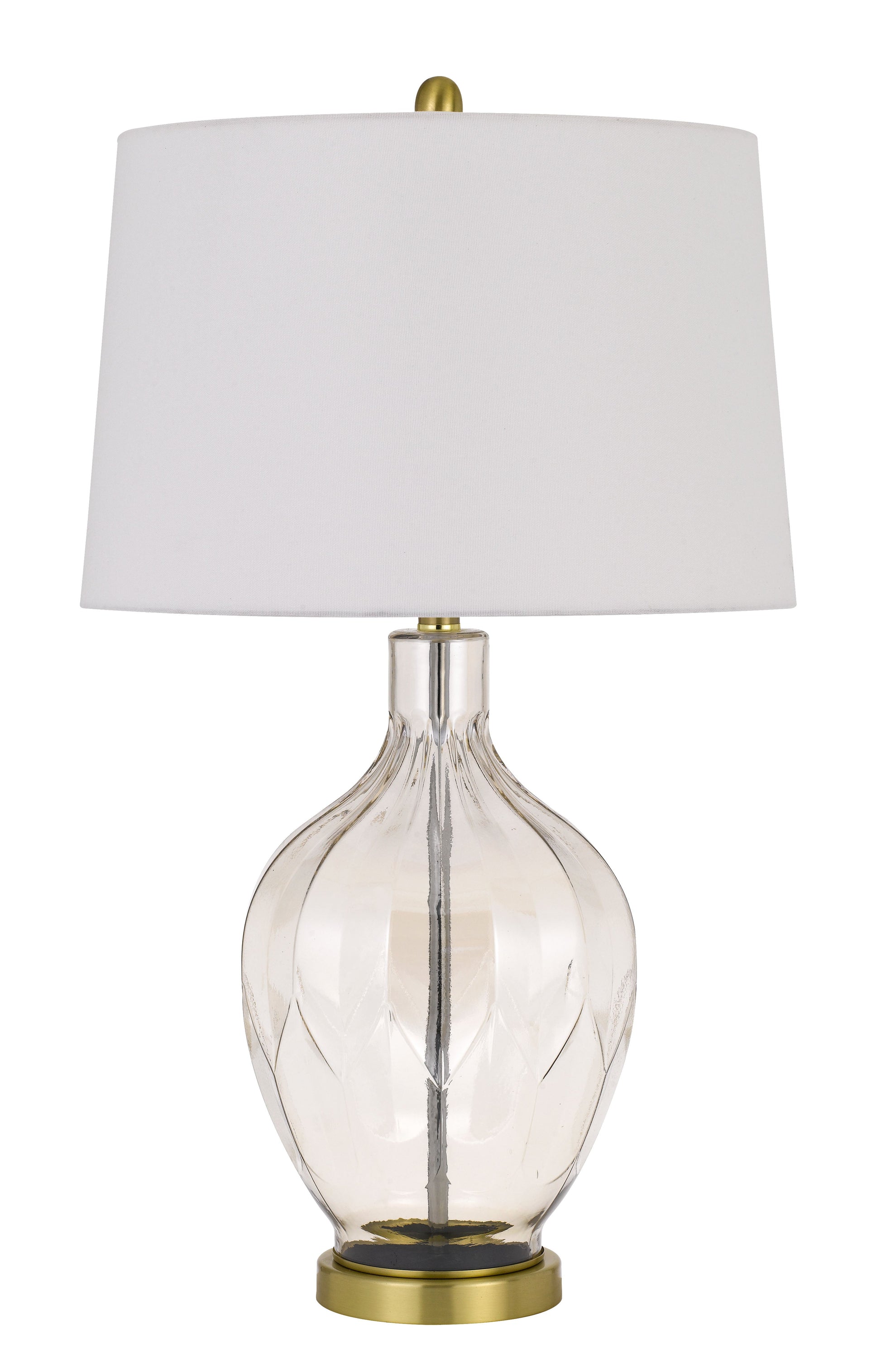 150W 3 way Bancroft glass table lamp with hardback taper drum fabric shade