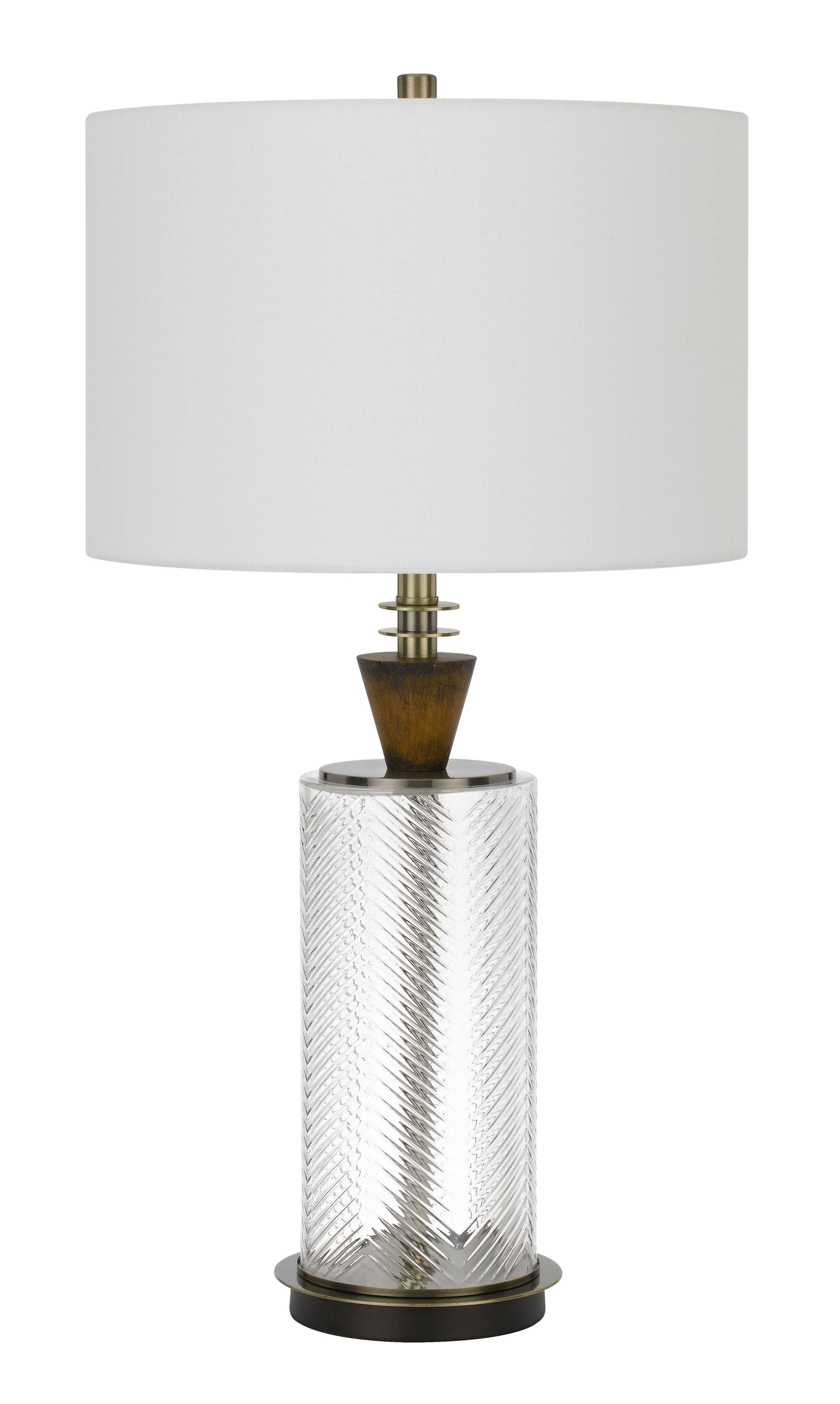 150W 3 way Sherwood glass table lamp with wood font and hardback fabric drum shade