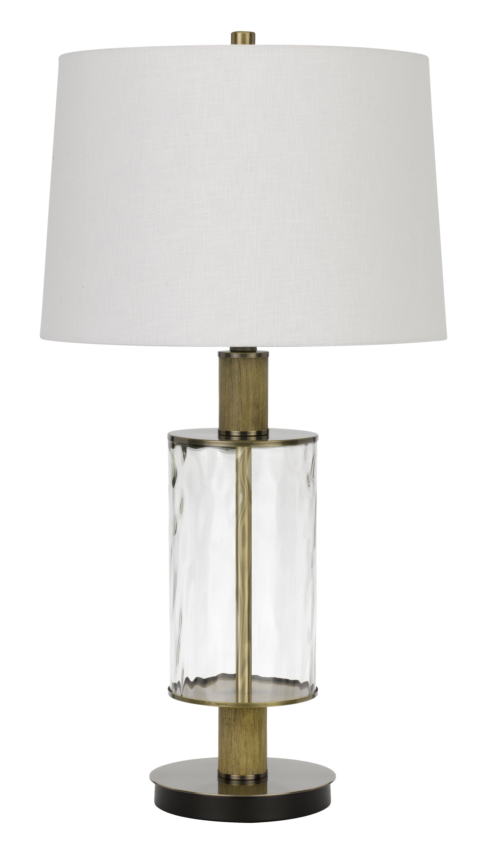 150W 3 way Morrilton glass table lamp with wood pole and hardback taper drum fabric shade